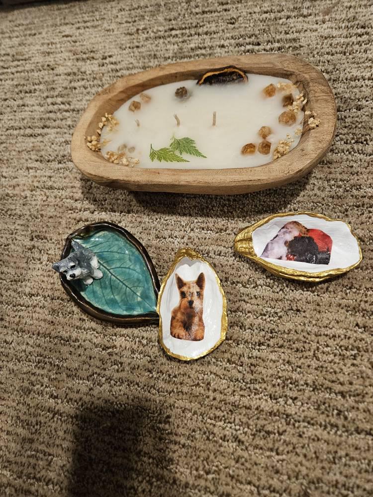 All custom jewelry dishes with satin bows and/or vinyl personalization must only be wiped with a dry cloth. No dishwasher, no microwave, no oven and not for use with food.