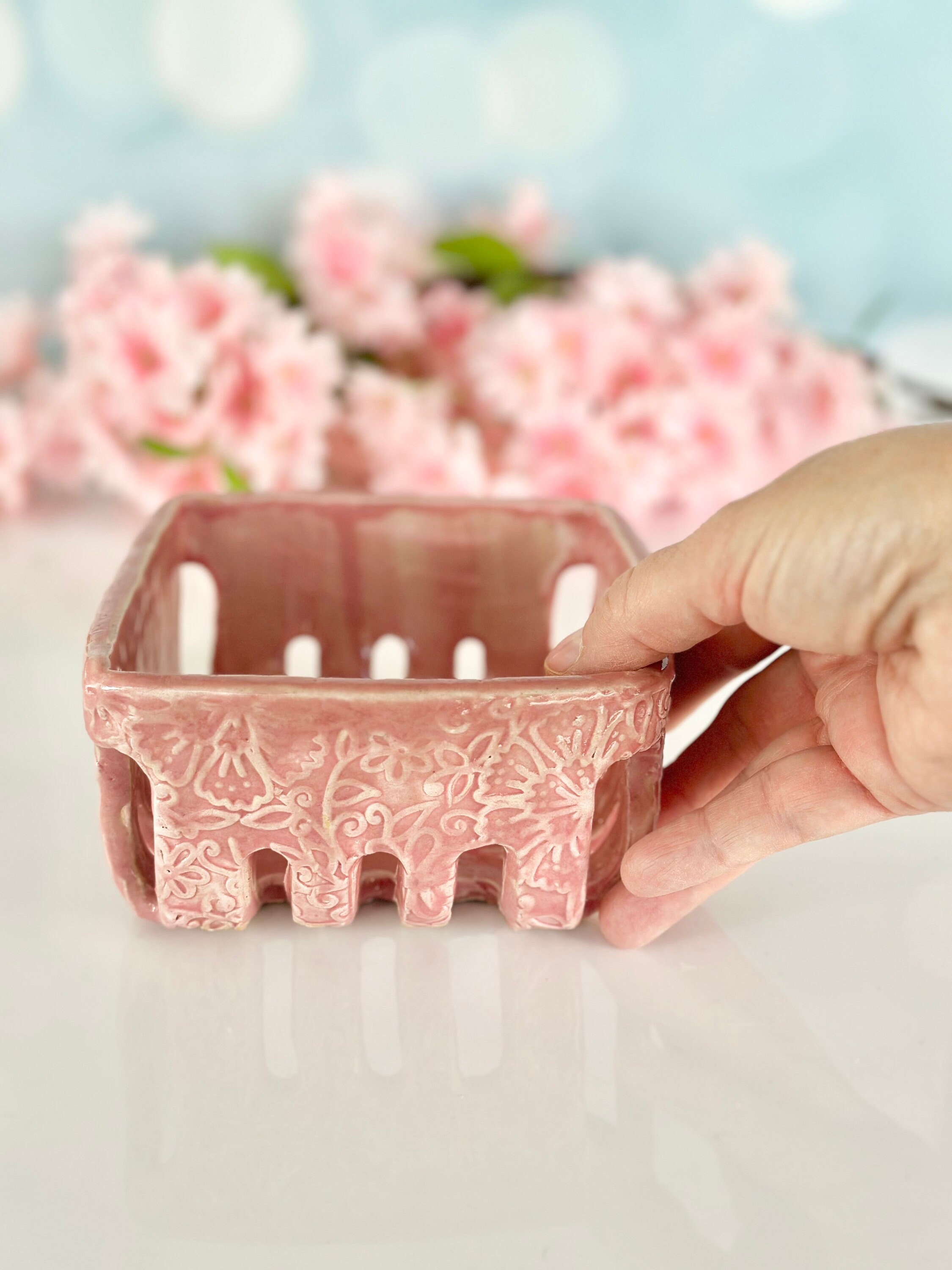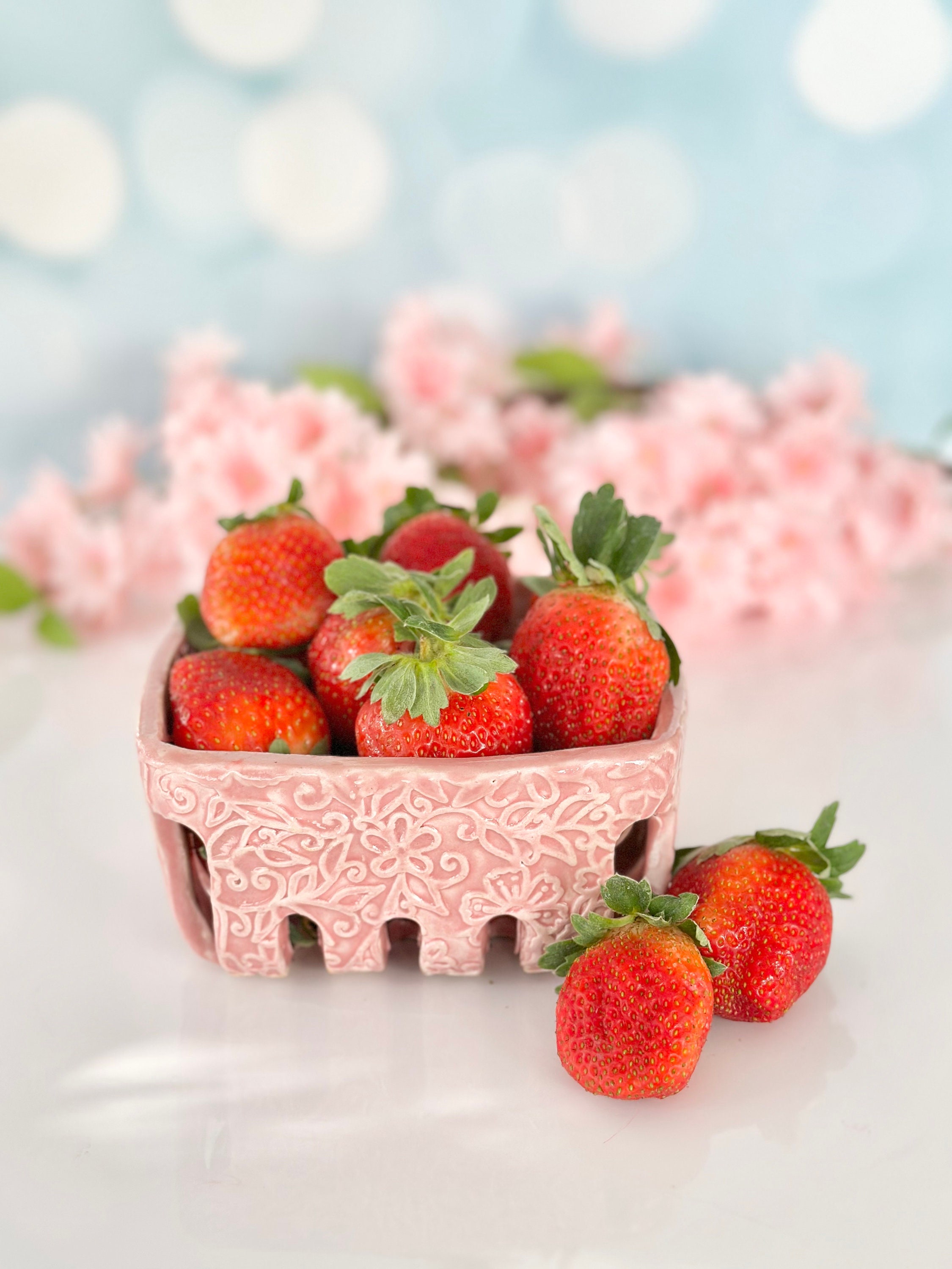 Small Strawberry Bowl Handmade Pink Fruit Serving Bowl Summer Table Fruit Serving Gift Basket For Fruit Washing Bowl Kitchen Breakfast