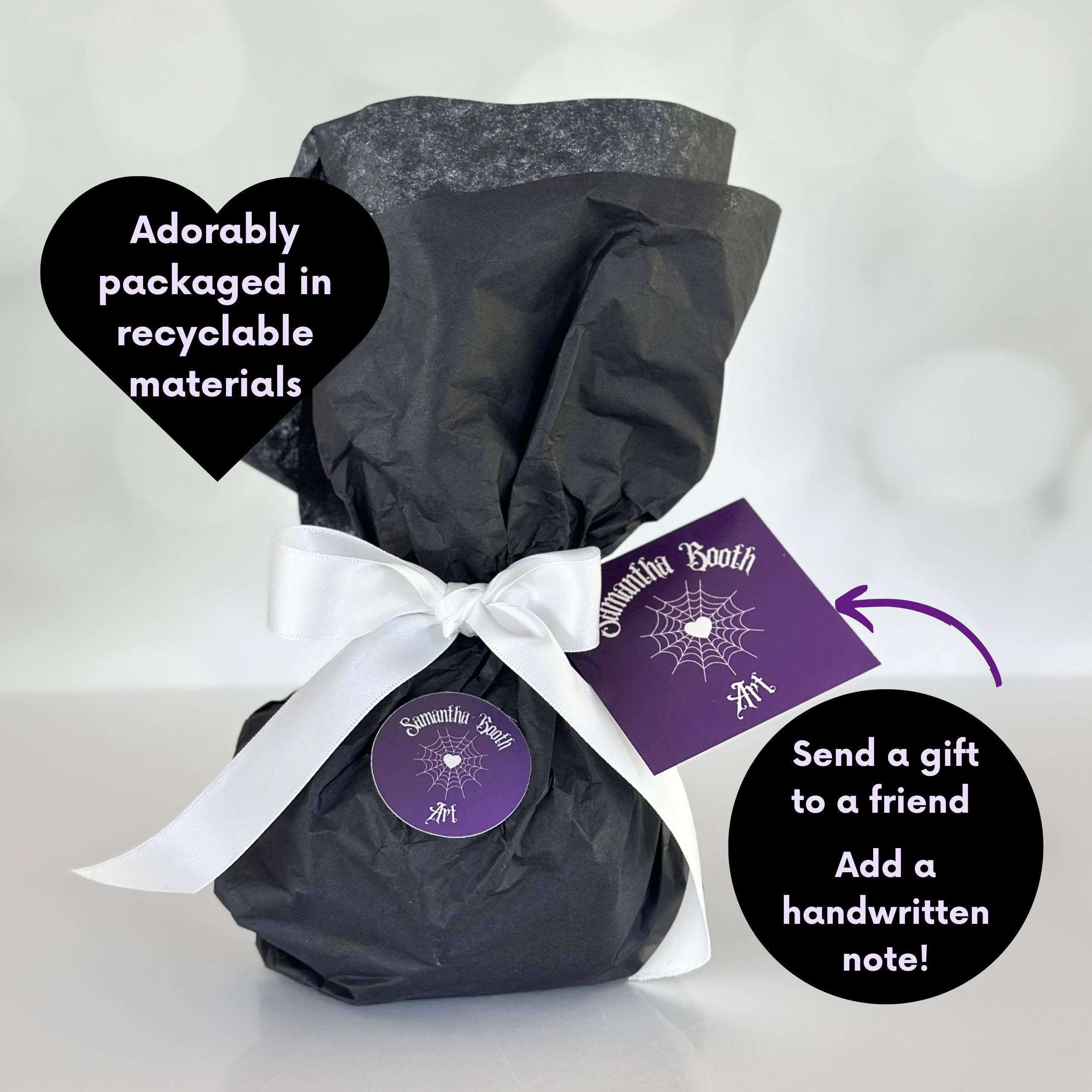 Each piece comes nicely wrapped in colorful tissue paper. If something is a gift, please let me know what you would like written on an enclosed card.