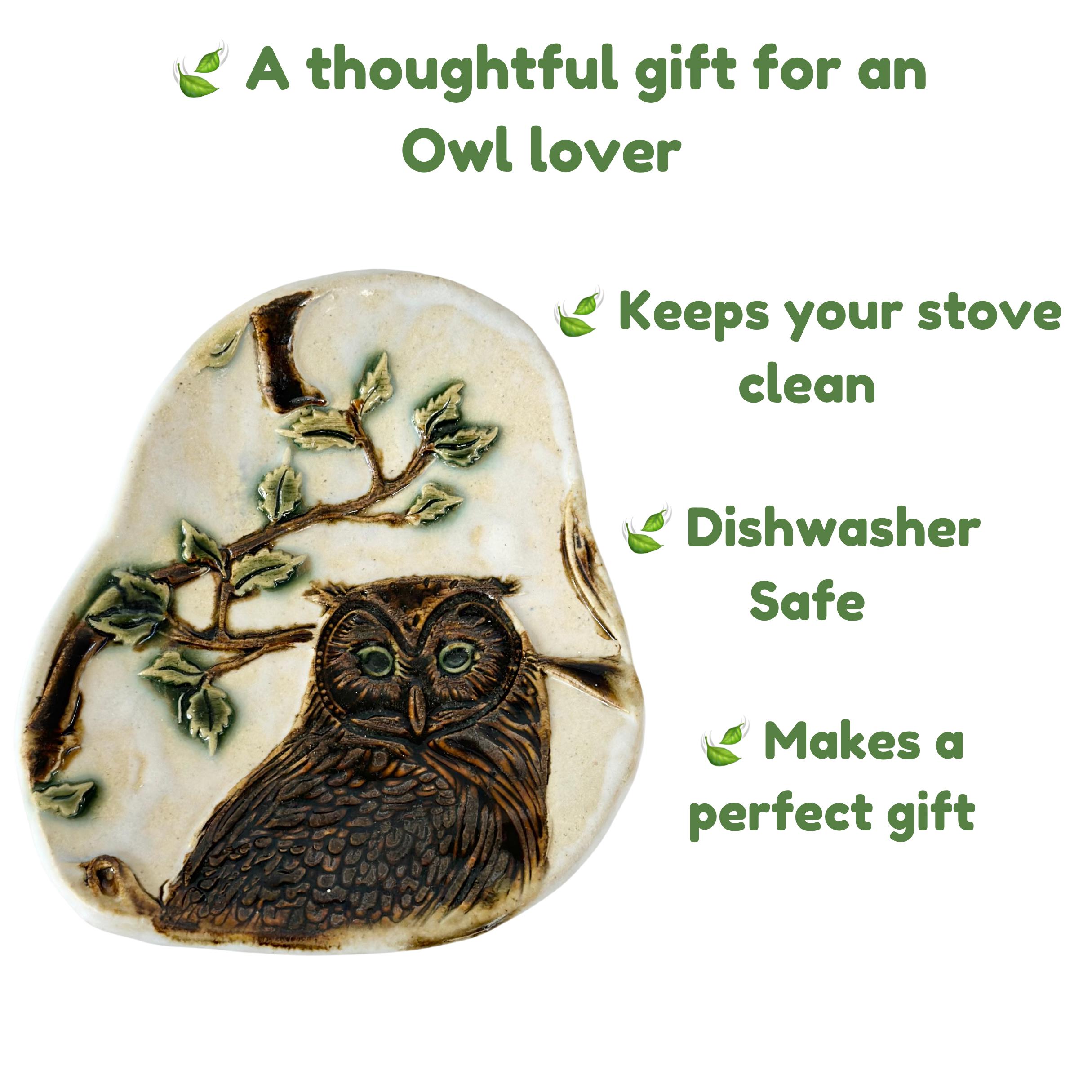 Our Owl spatula stove spoon rest makes a delightful gift for owl lovers and a charming addition to any kitchen decor. This large owl spoon holder is perfect for coffee bars or home use to keep your counters clean.