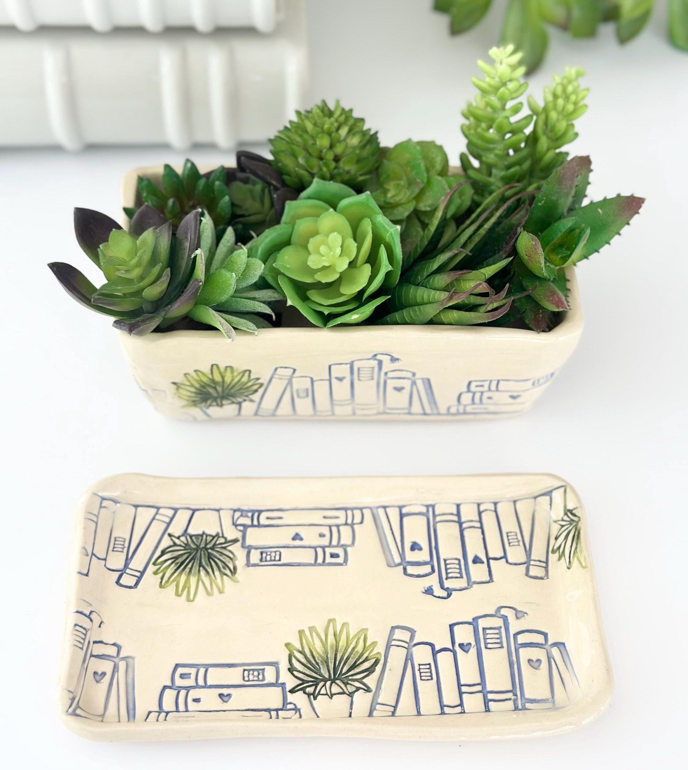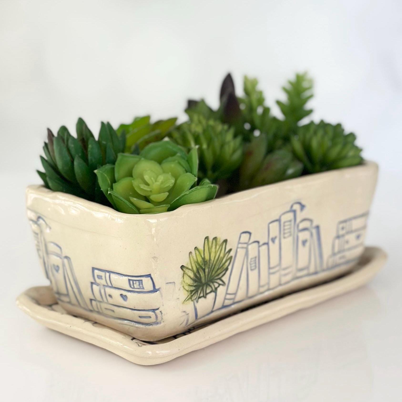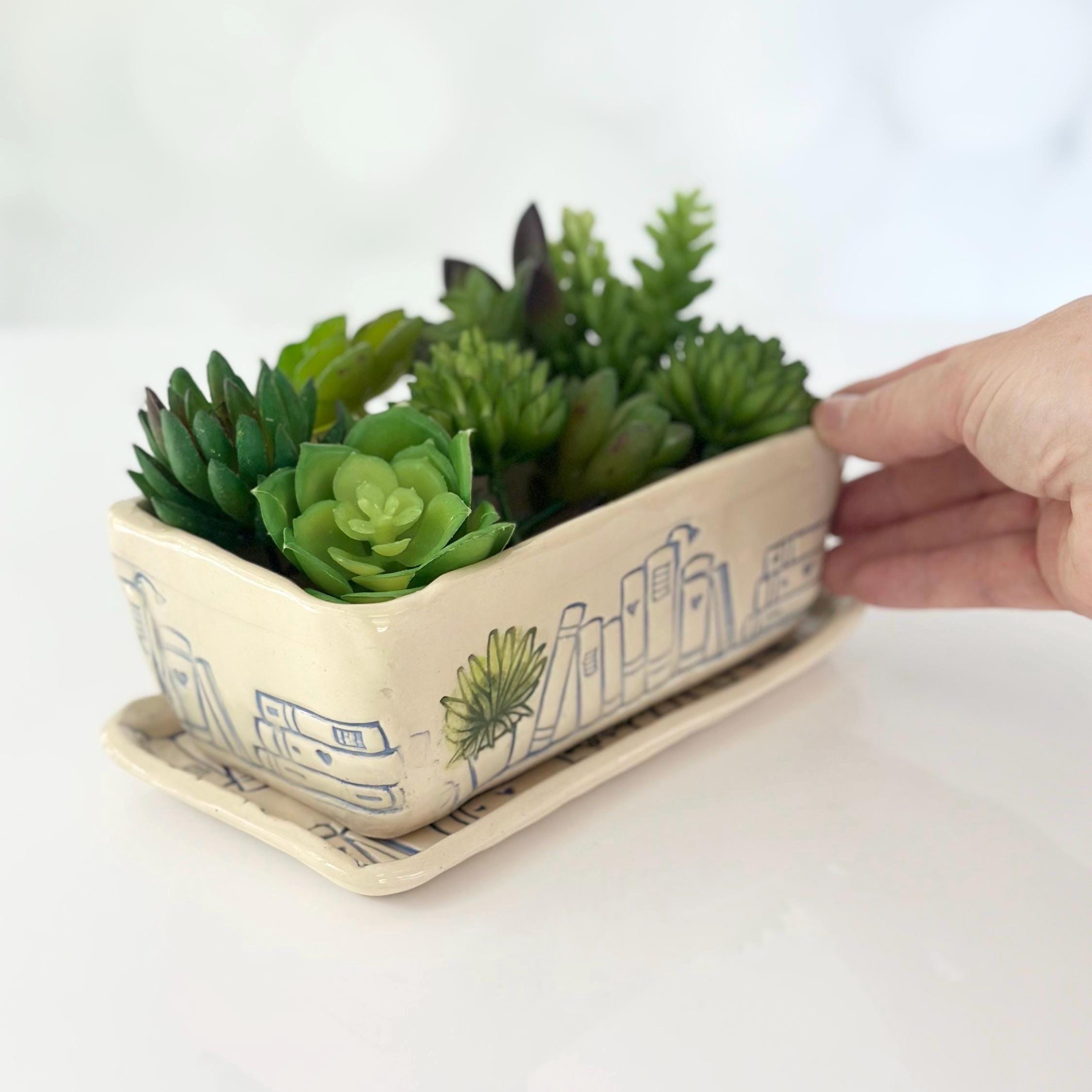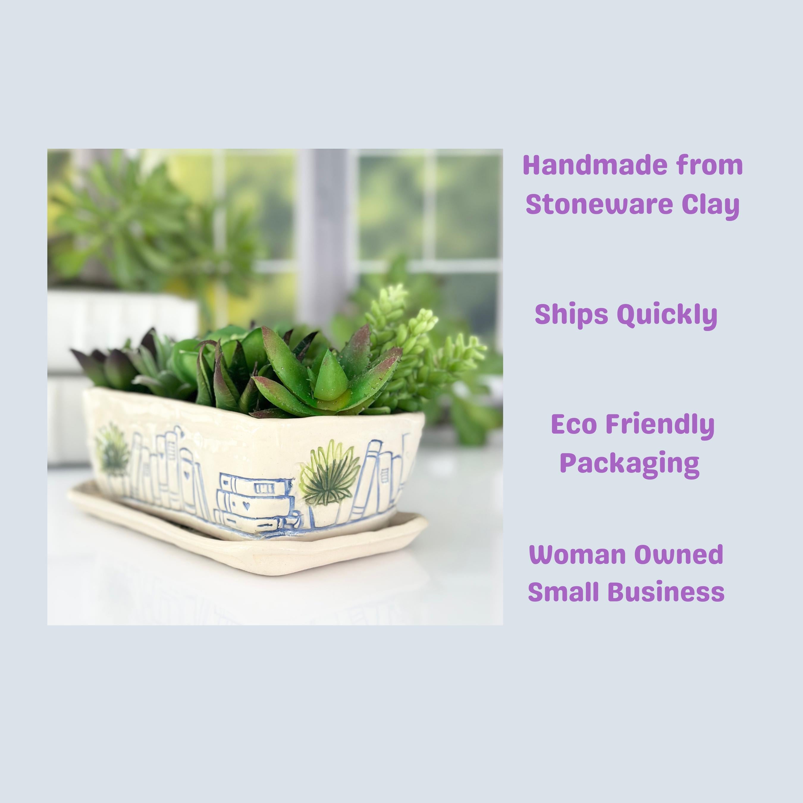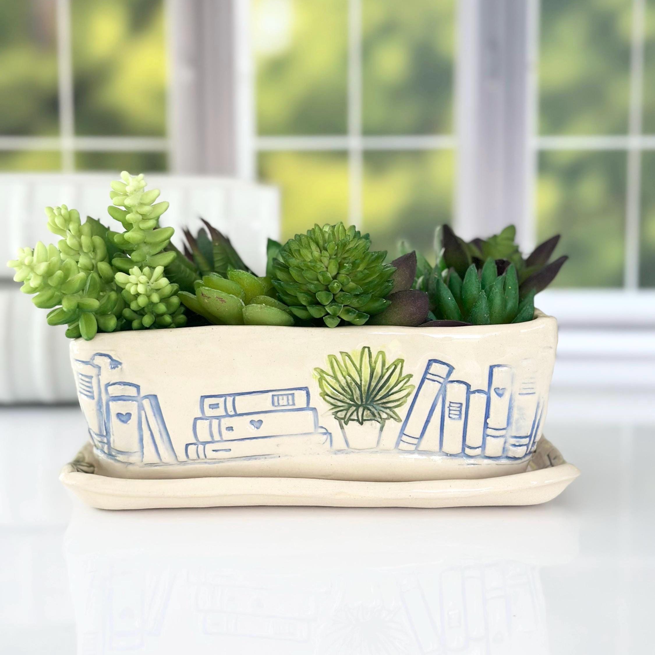 Indoor Cactus Planter Pot for home garden or window planter makes a thoughtful librarian gift or plant lover birthday surprise. This cactus planter includes drainage holes and is perfect for a librarian birthday or cozy indoor dΓ©cor.