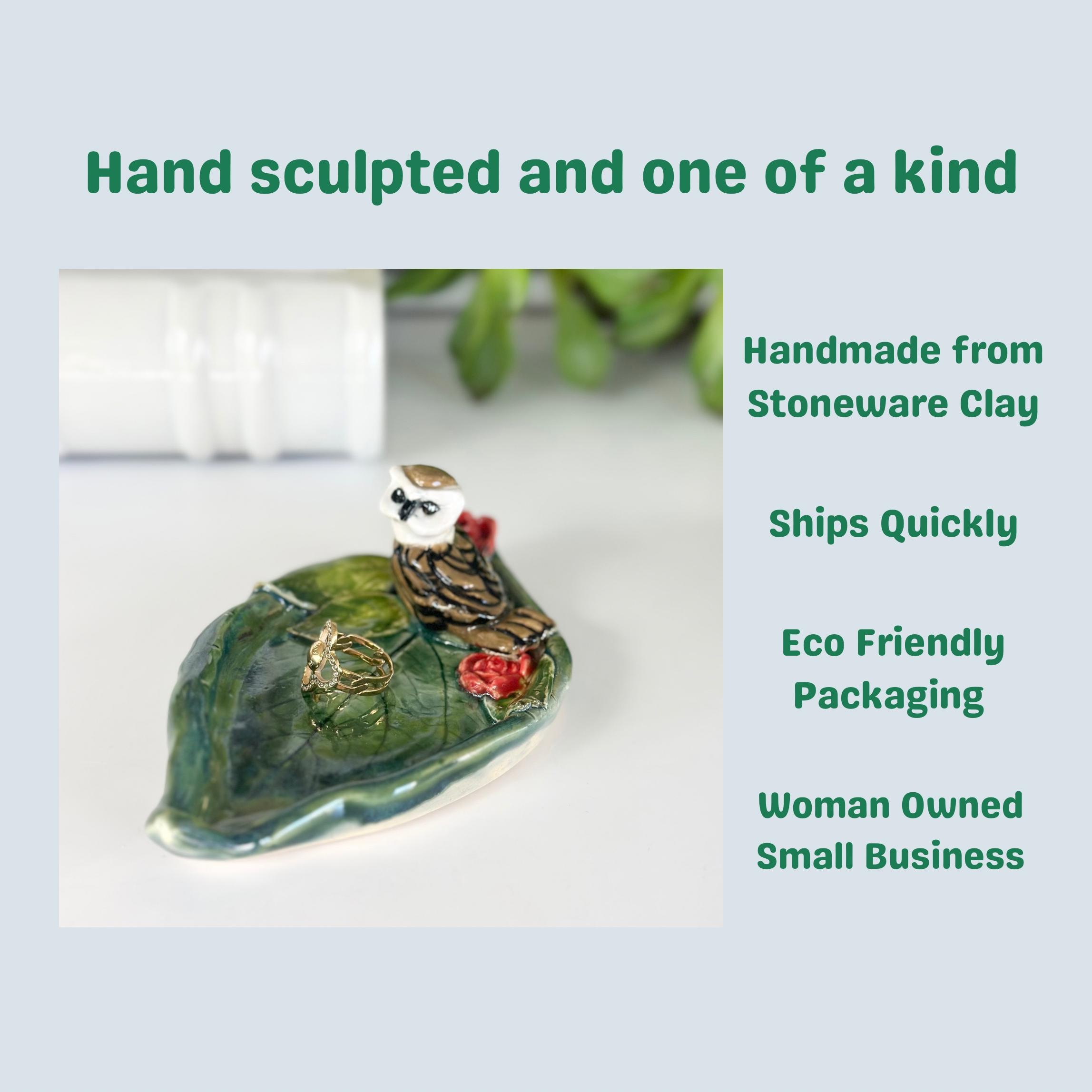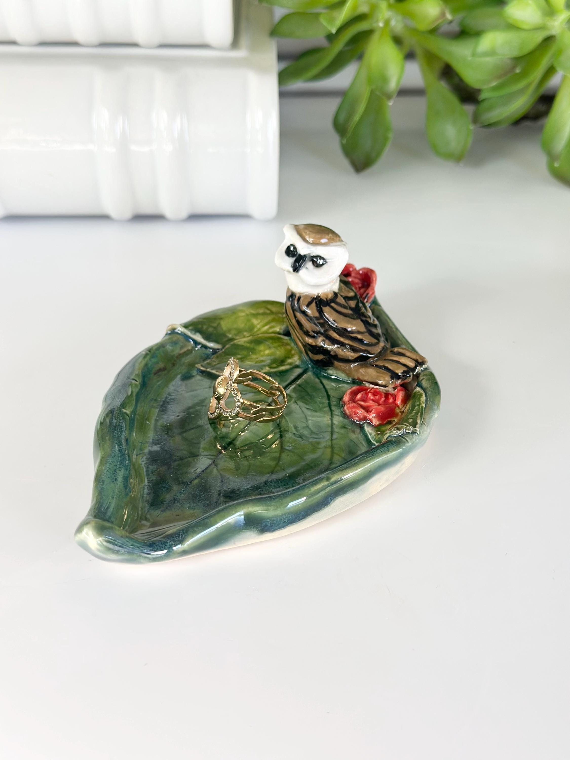 Our ceramic owl ring dish, doubling as a trinket dish, is an ideal gift for both owl moms and daughters, featuring charming owl art inspired by nature