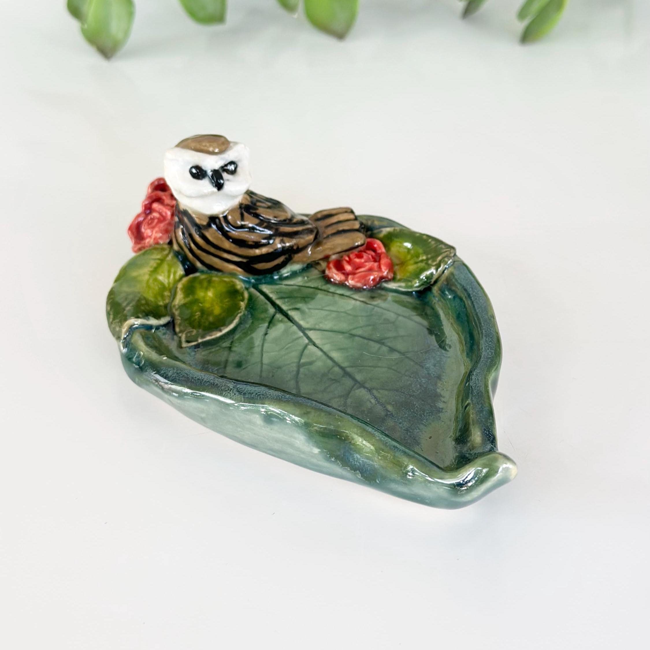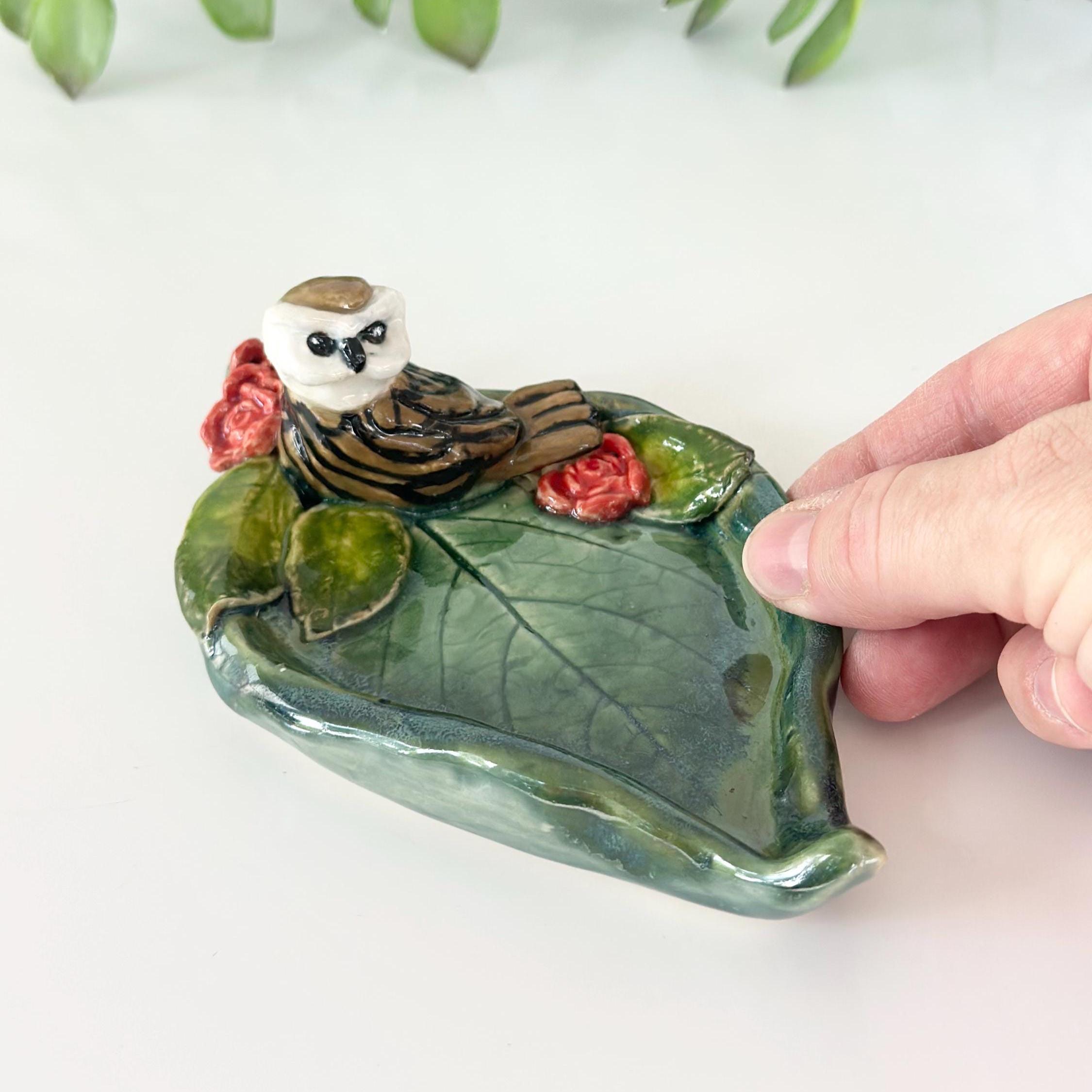 Handmade Ceramic Owl Ring Dish: Stoneware Trinket Holder