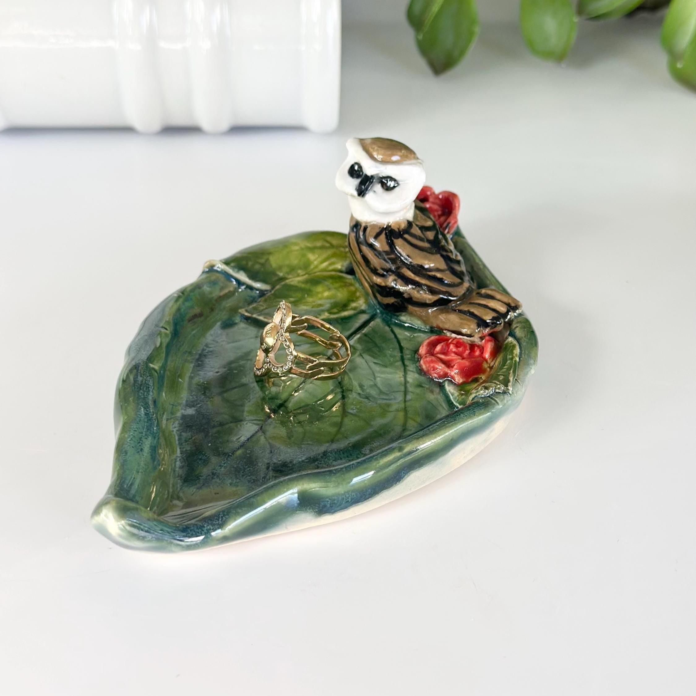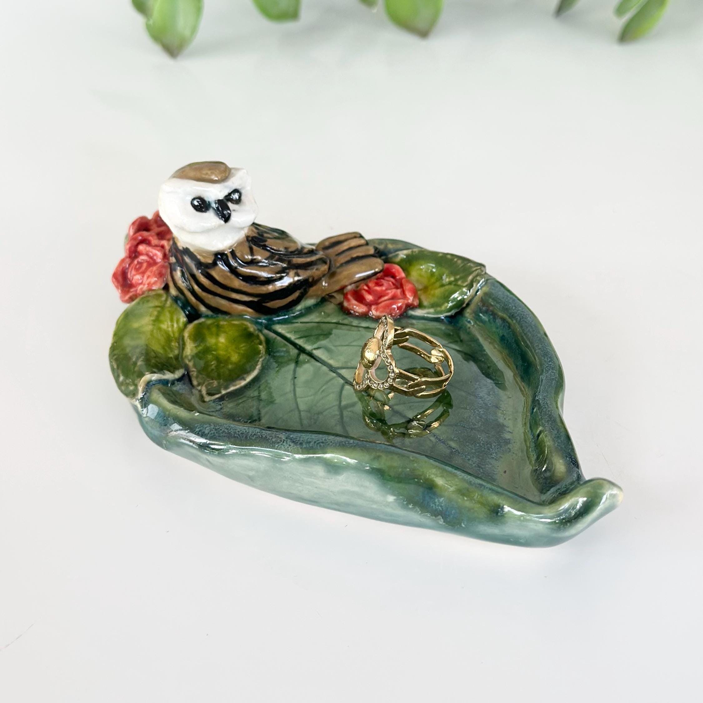 Our ceramic owl ring dish, doubling as a trinket dish, is an ideal gift for both owl moms and daughters, featuring charming owl art inspired by nature