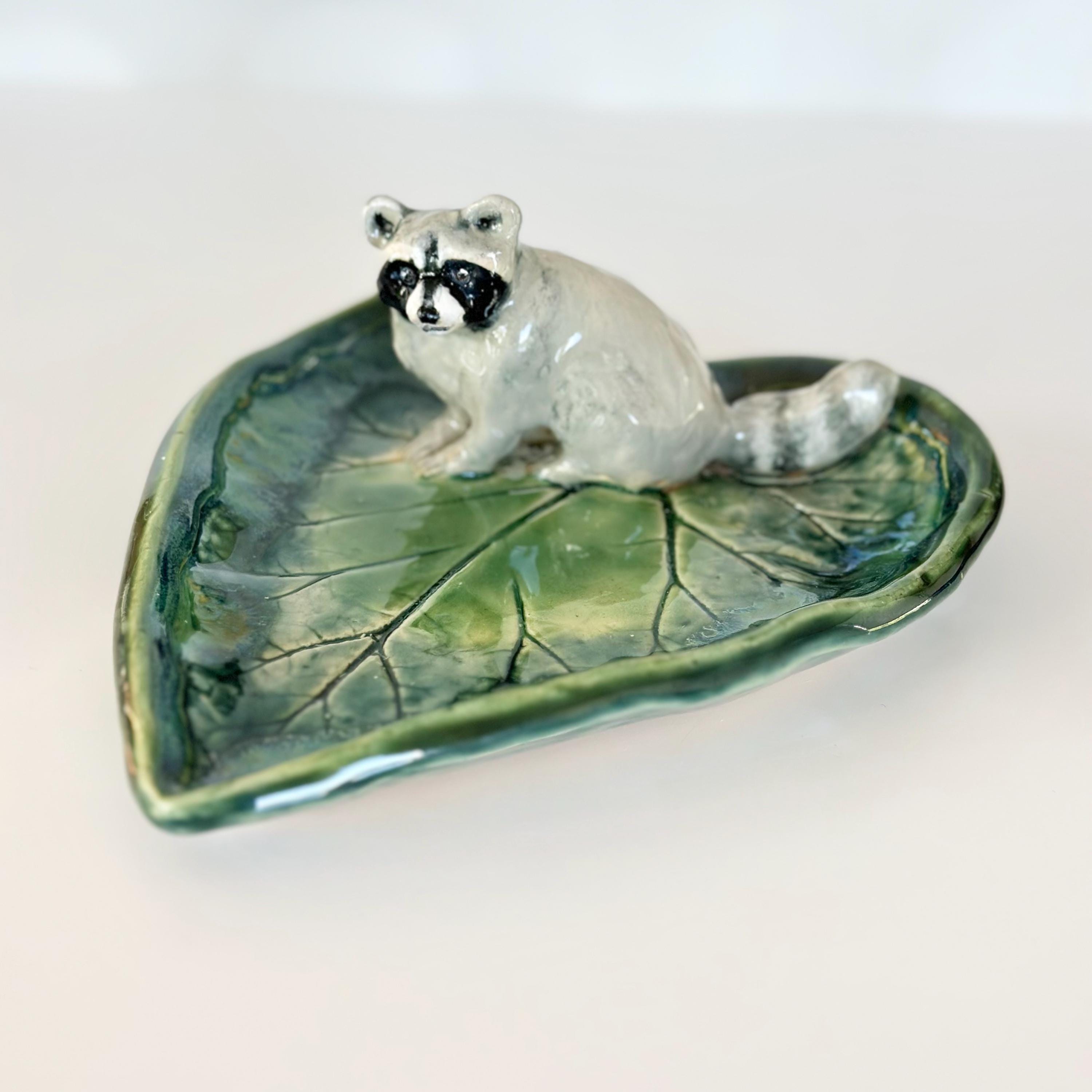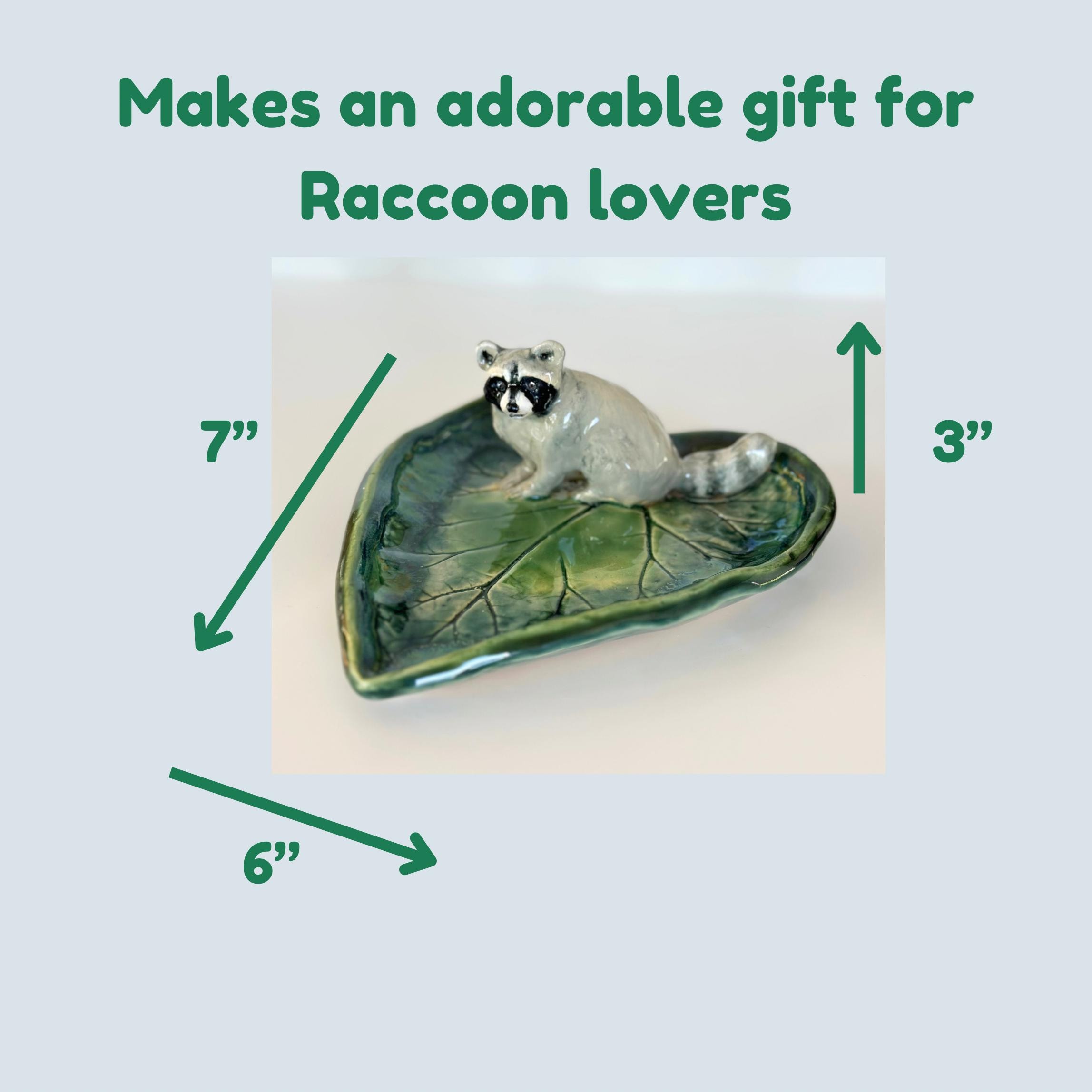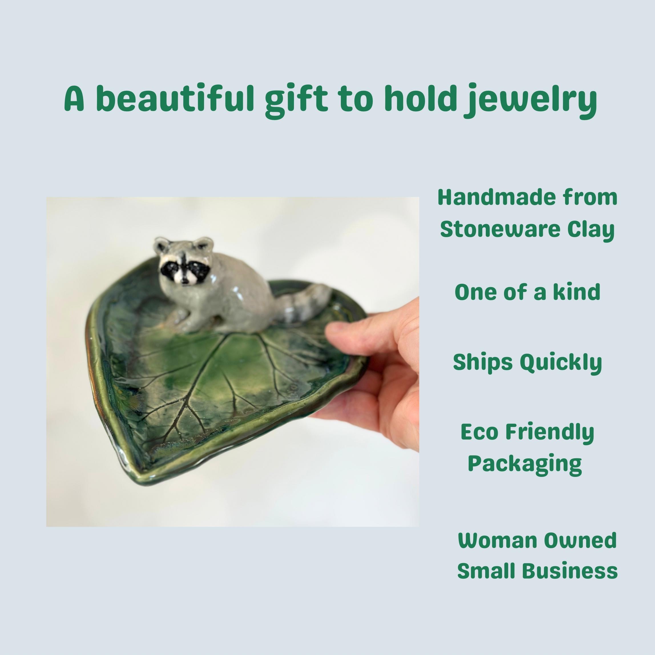 Jewelry dish raccoon art trinket dish makes a fun and functional gift. This ceramic gift raccoon jewelry holder is perfect as a daughter birthday gift, nature leaf jewelry dish, or necklace holder.