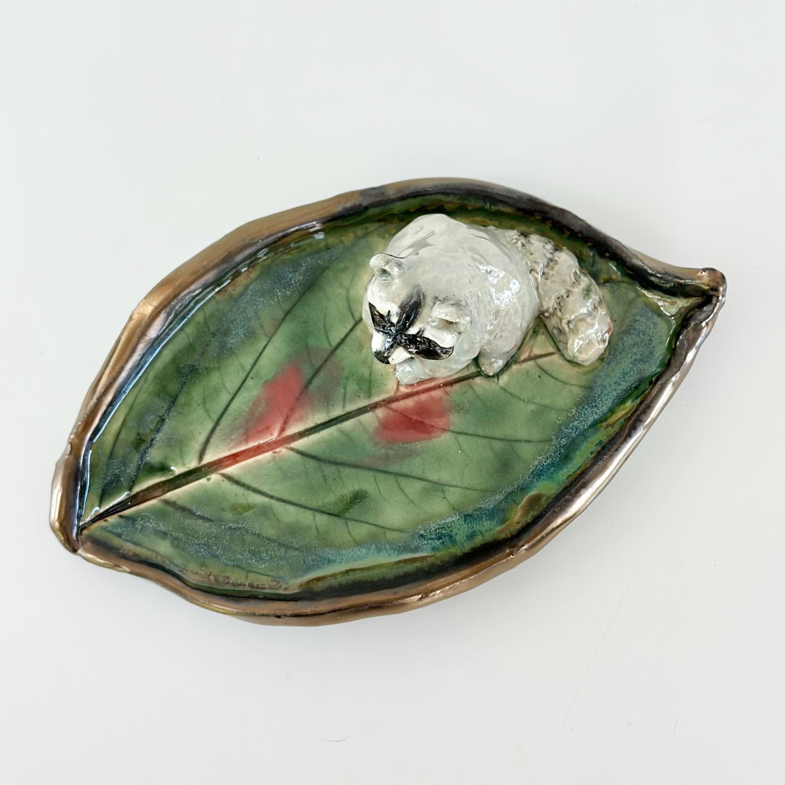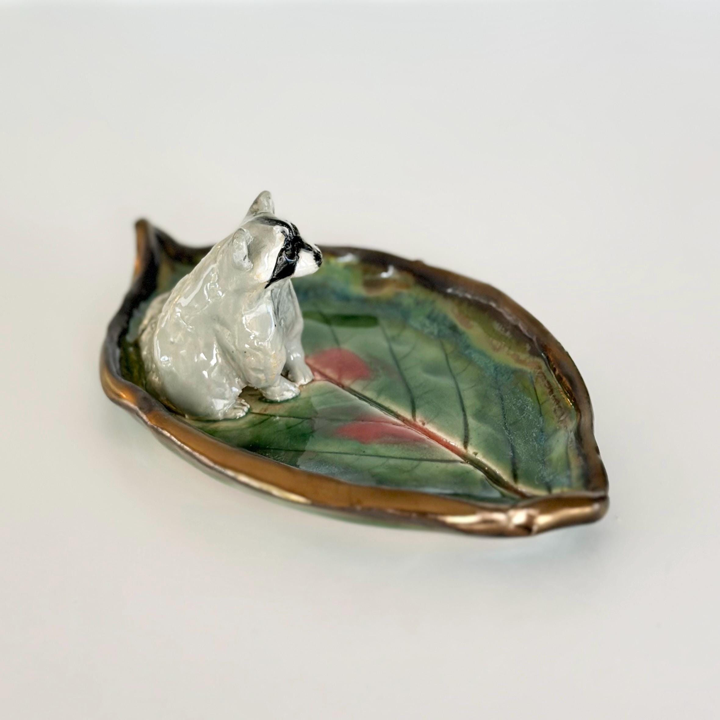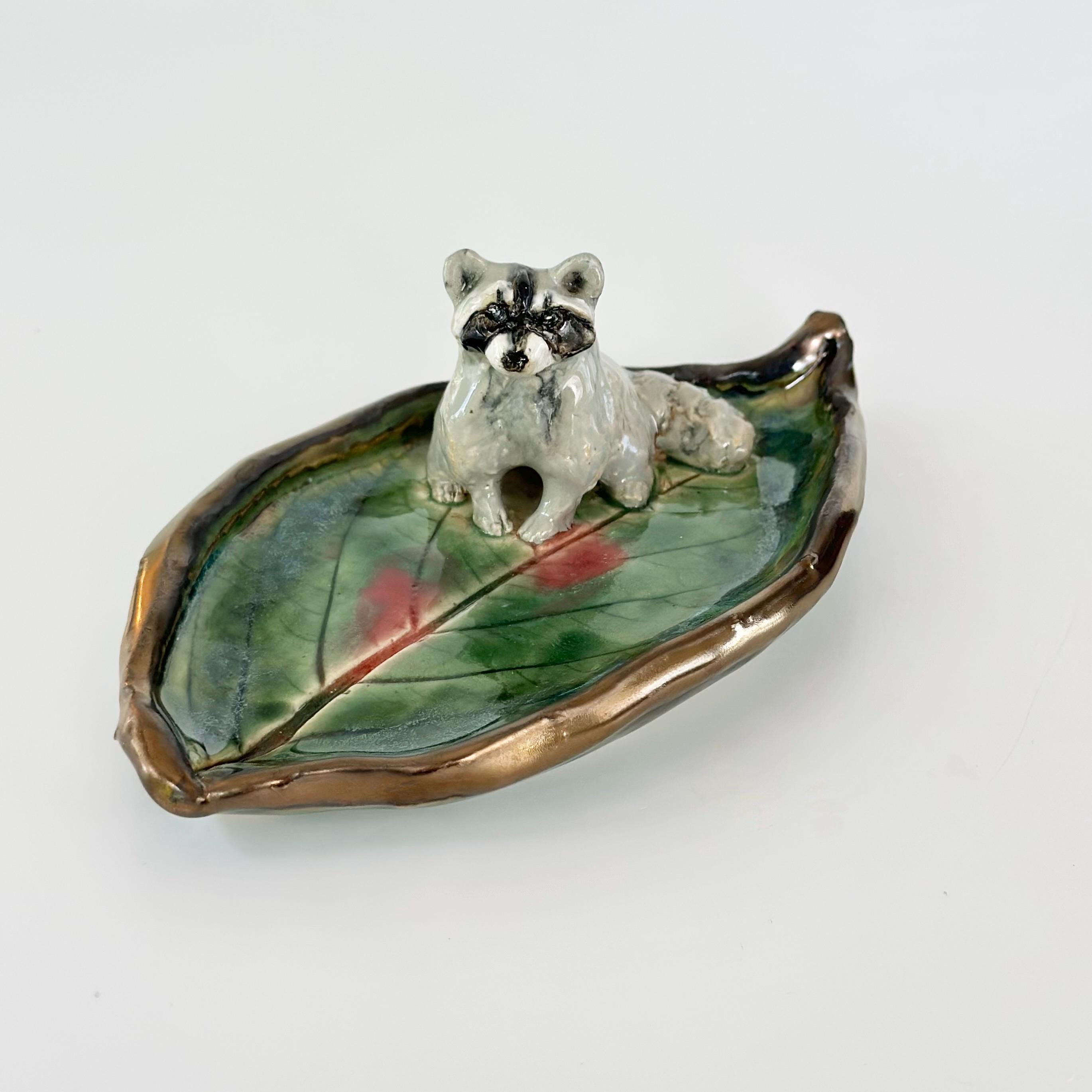 Jewelry dish raccoon art trinket dish makes a fun and functional gift. This ceramic gift raccoon jewelry holder is perfect as a daughter birthday gift, nature leaf jewelry dish, or necklace holder.