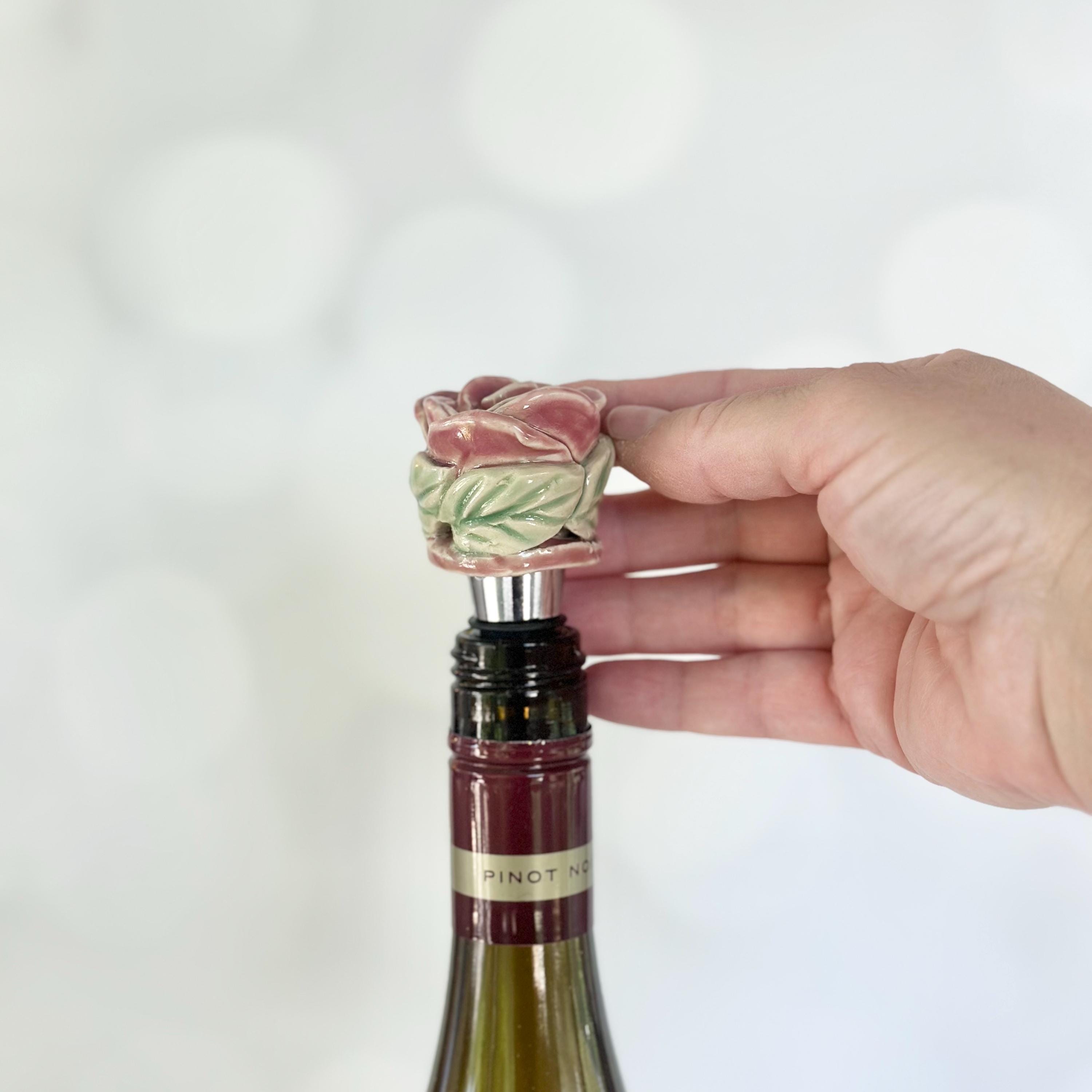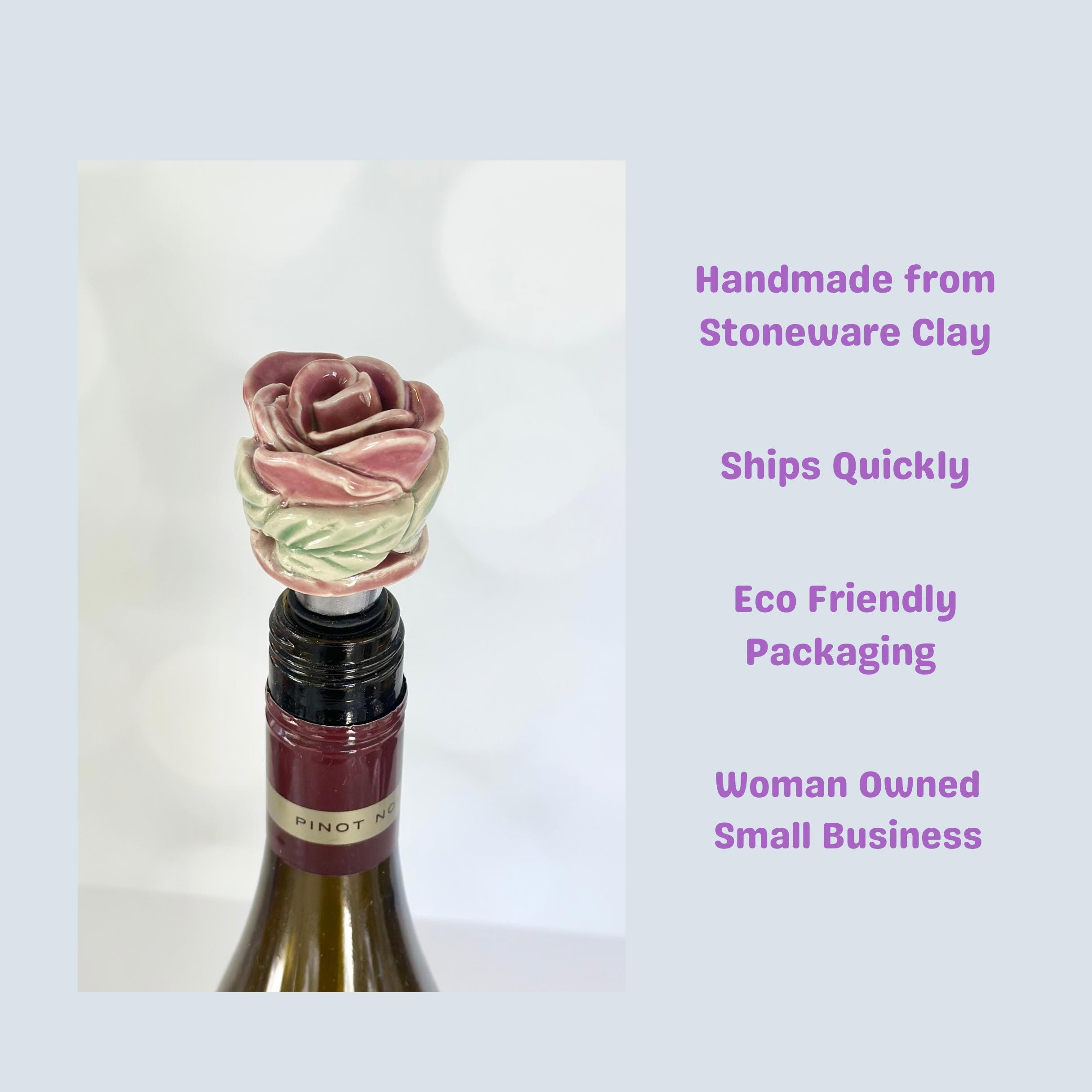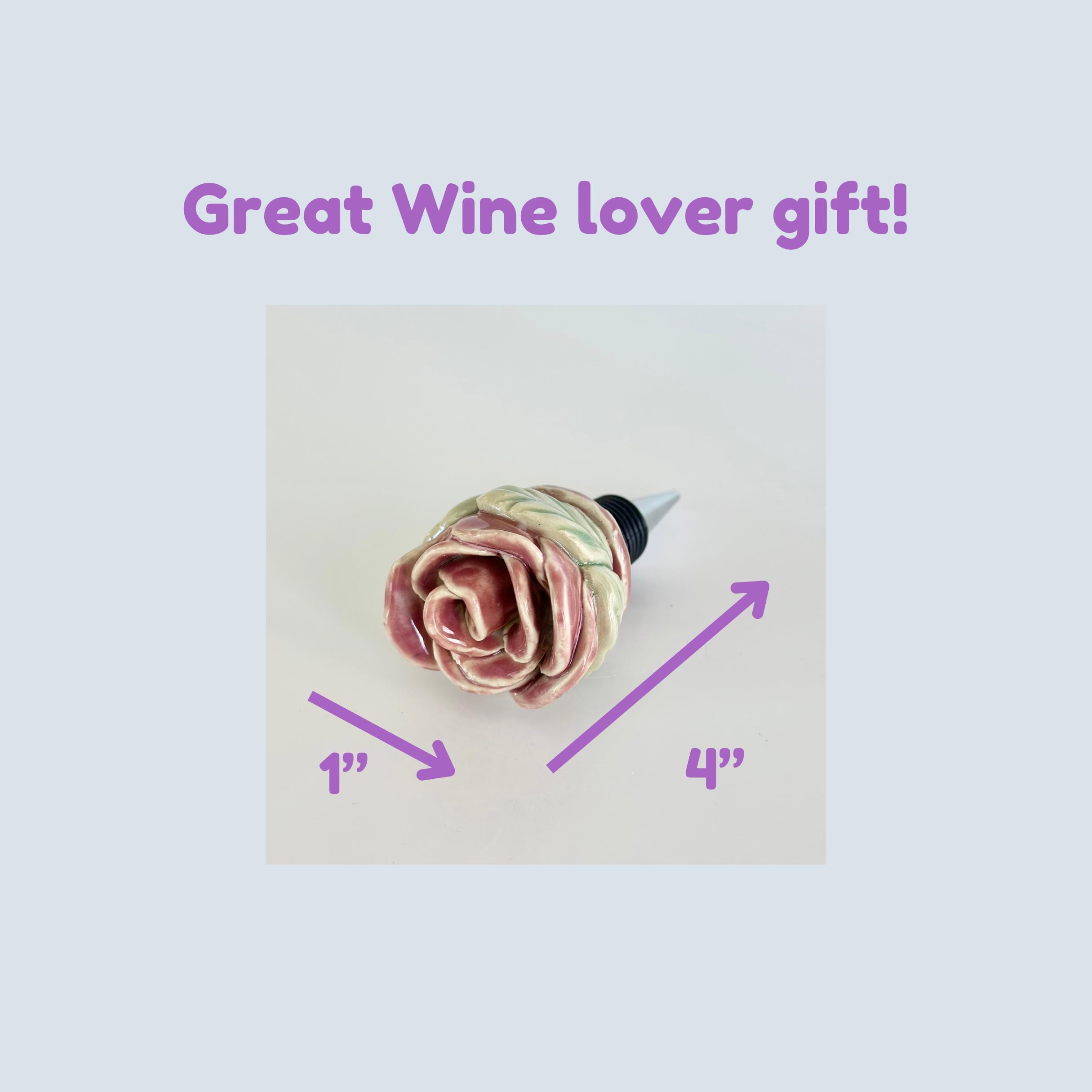 This wine stopper wine gift is a unique wine stopper featuring a rose. perfect for a flower lover. It also makes a great wine cork stopper gift and a thoughtful housewarming gift.