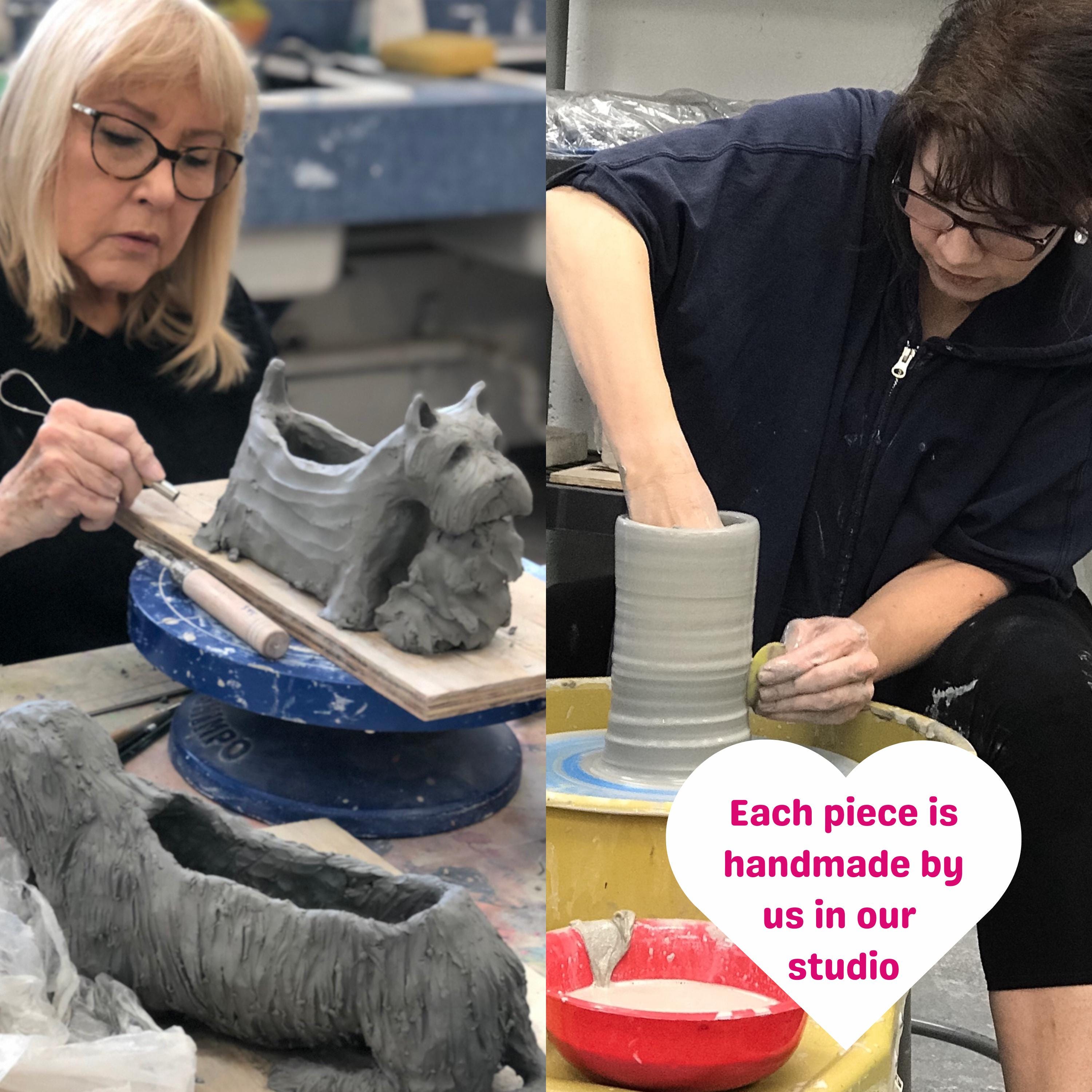 Our pottery is photographed up close to show details. Please double check and carefully read the description for exact measurements. No refunds are given for not reading size information.