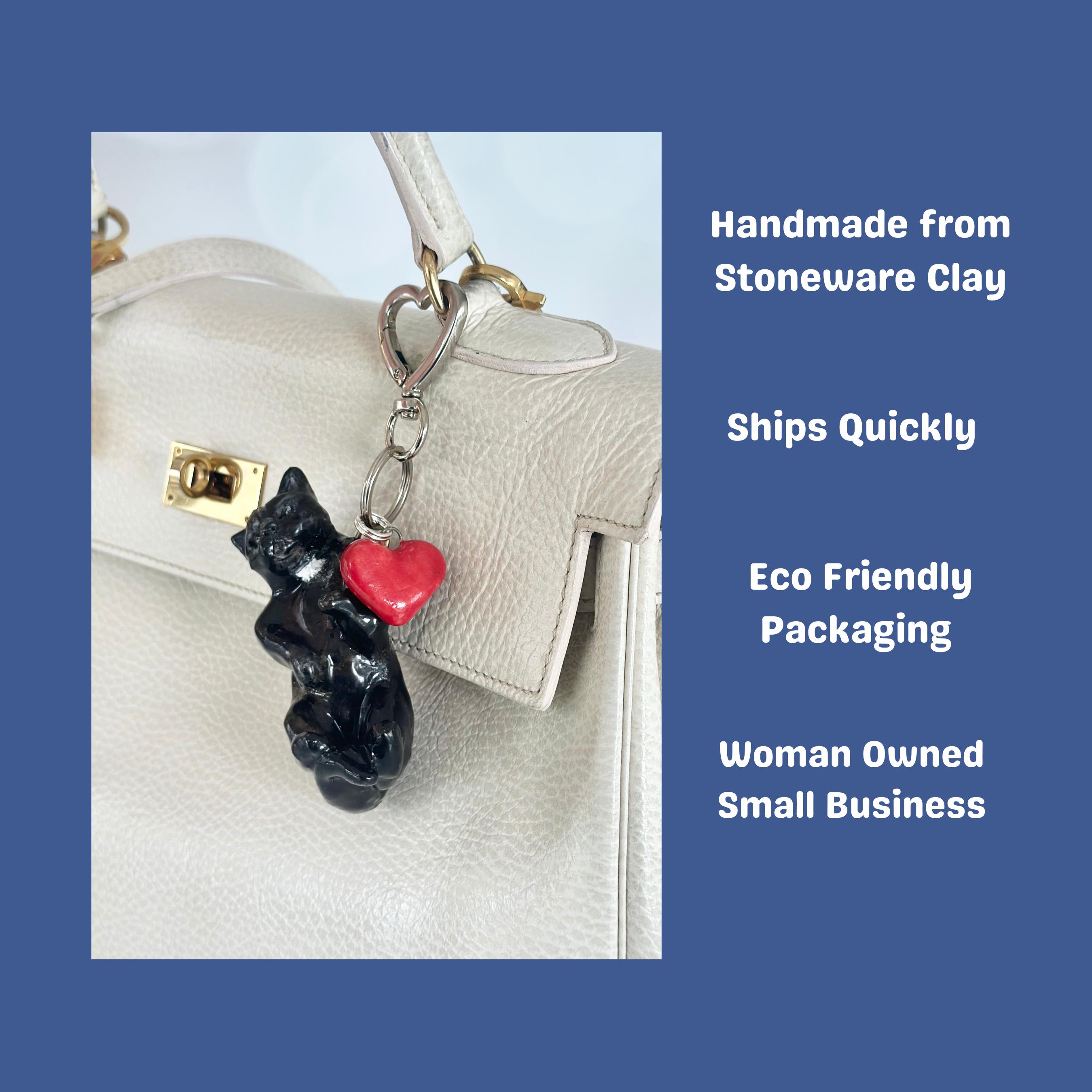 This cat bag charm is a perfect feline bag charm for any cat lover who wants to add a unique touch to their accessories. A thoughtful gift for a cat mom, cat art fan, or anyone who loves cat bag decor.