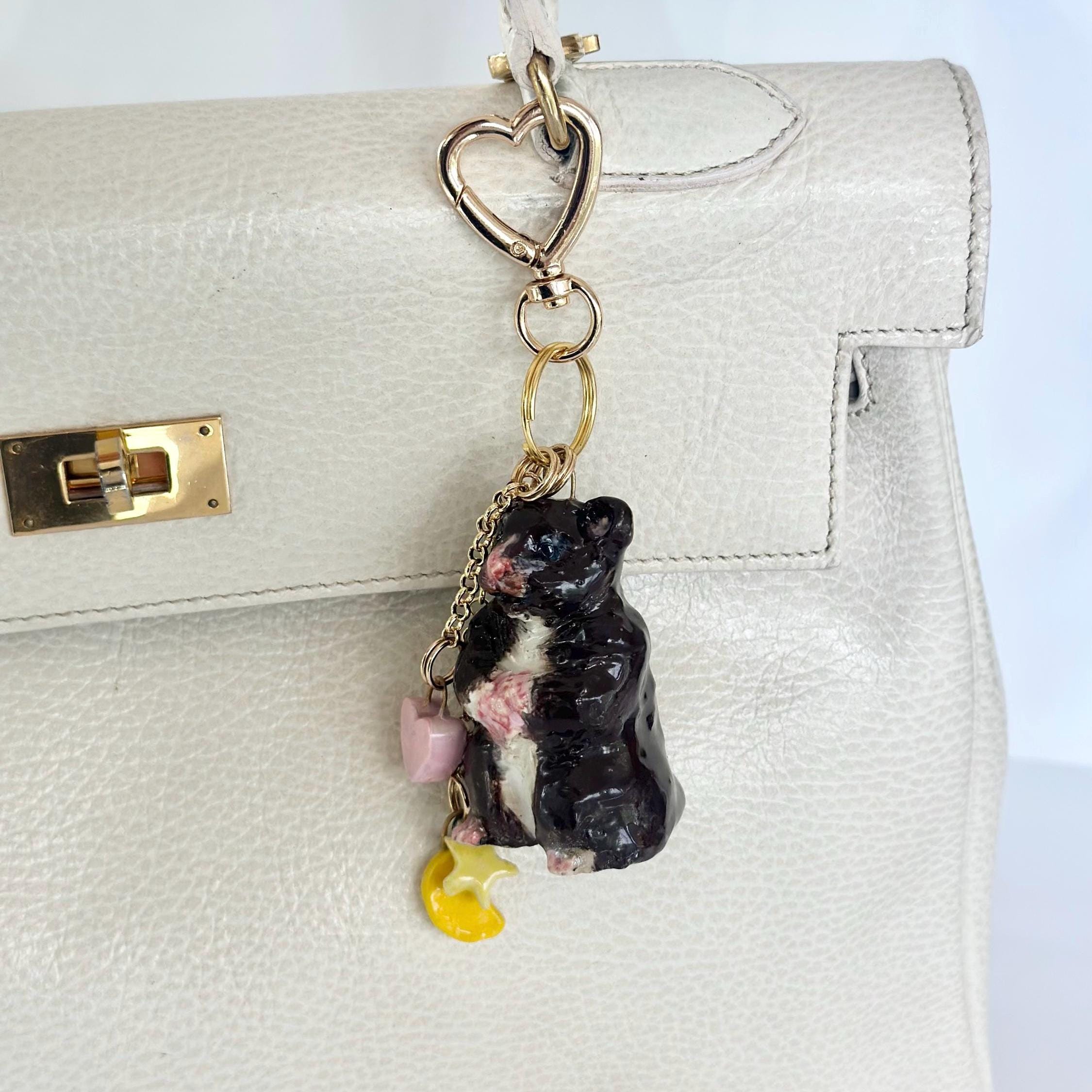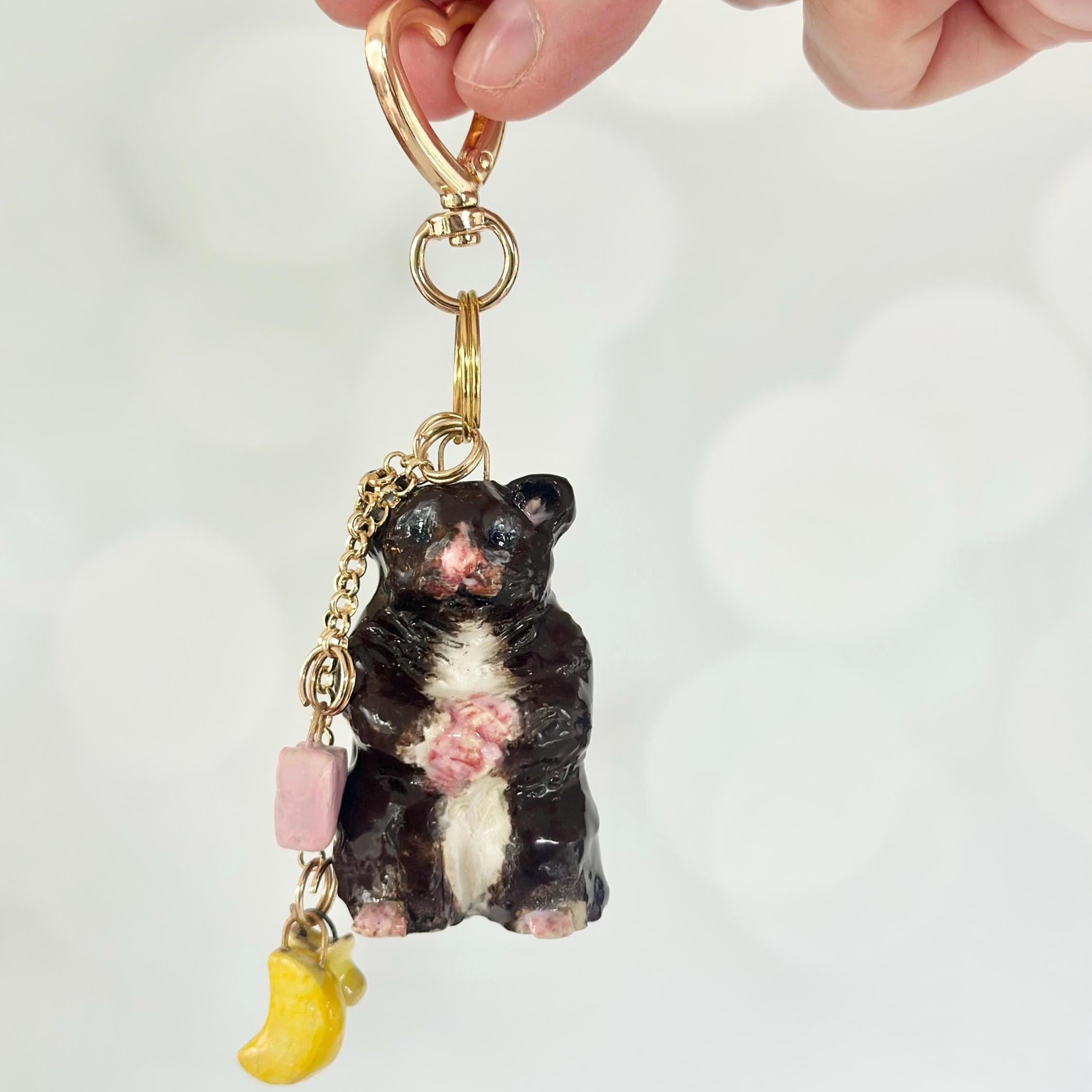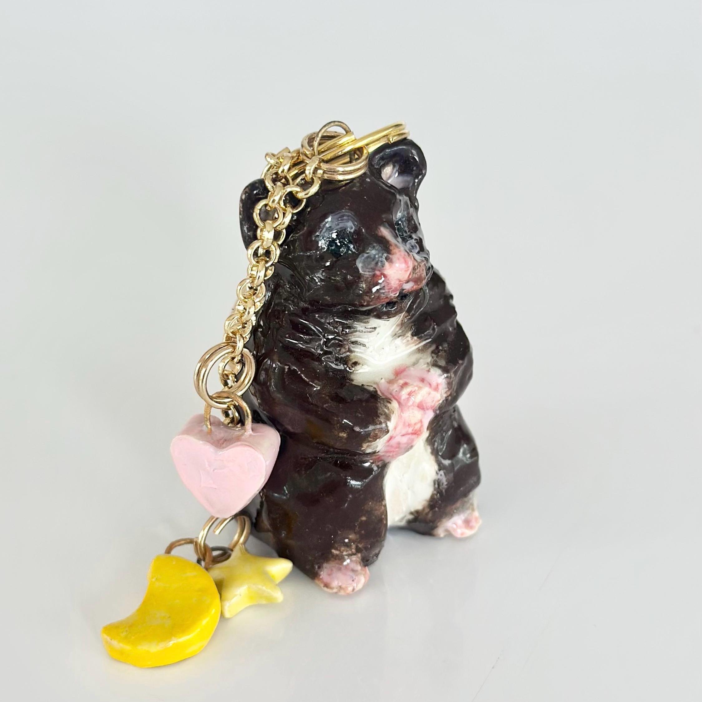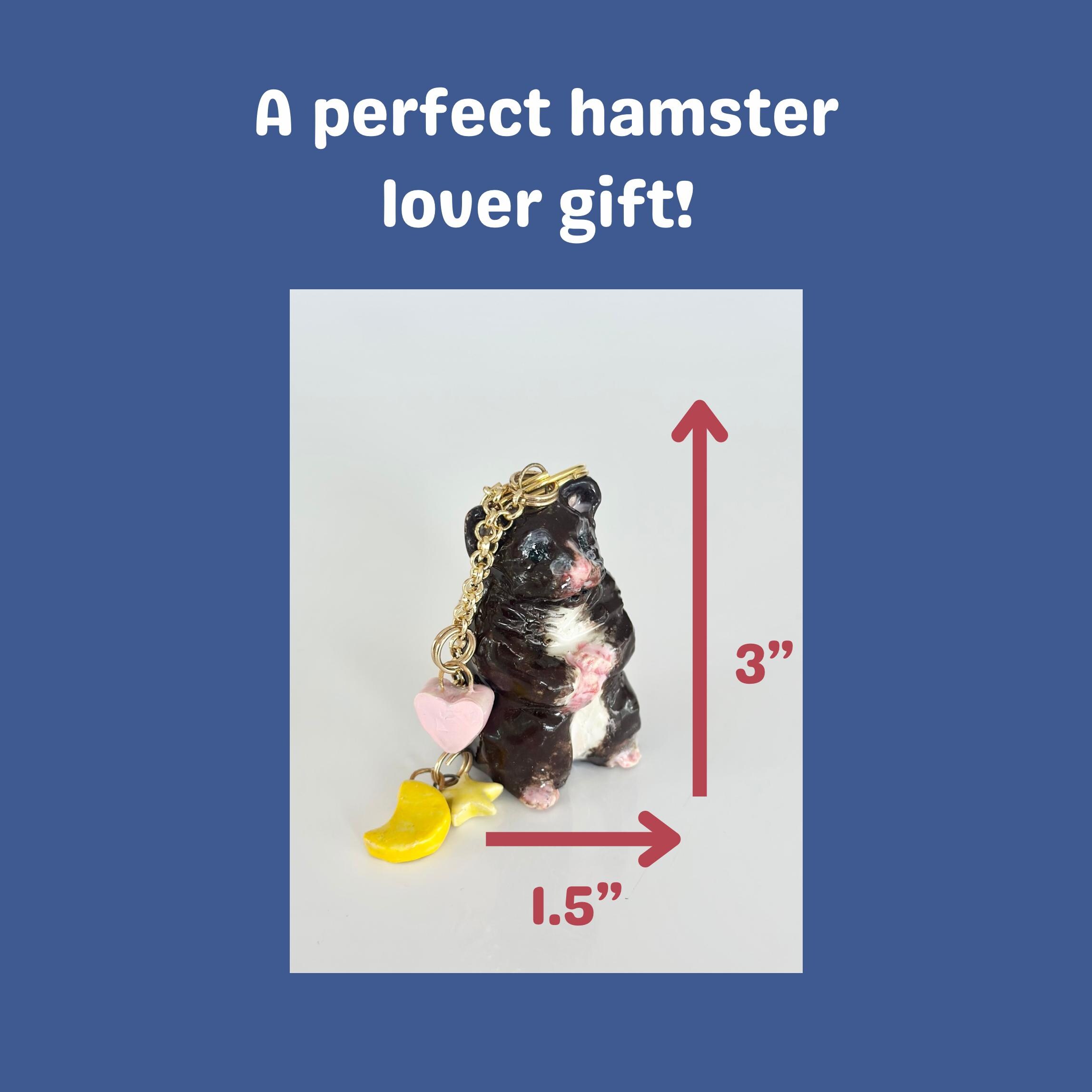 This hamster bag charm is a perfect bag charm gift for any hamster lover who wants to add a unique touch to their accessories. A thoughtful gift for a hamster mom, hamster art fan, or anyone who loves hamster decor.