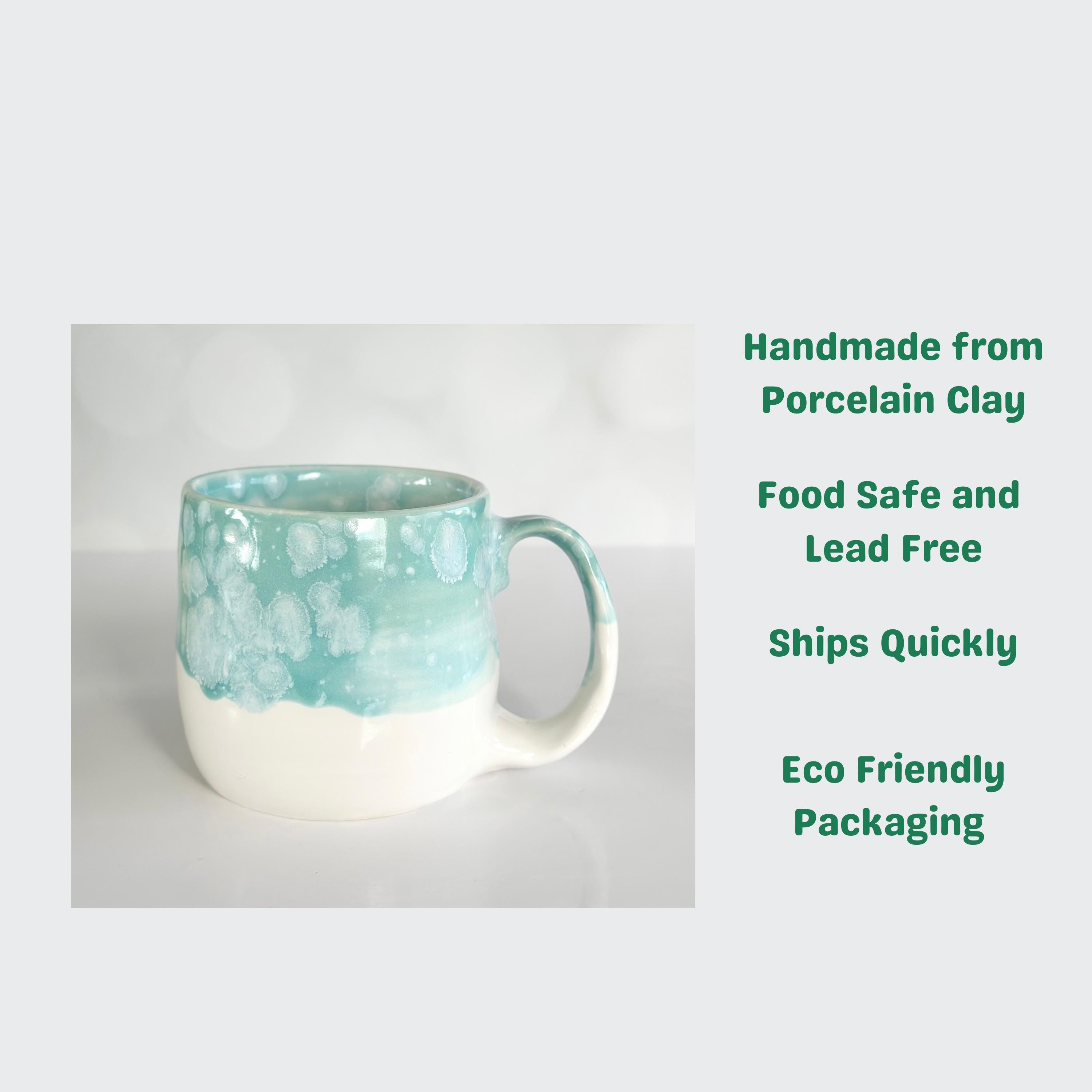 This handmade pottery mug is the perfect coffee lover gift for a coffee bar station or boho kitchen. A unique birthday coffee station gift for tea lovers or anyone who enjoys artisan mugs.