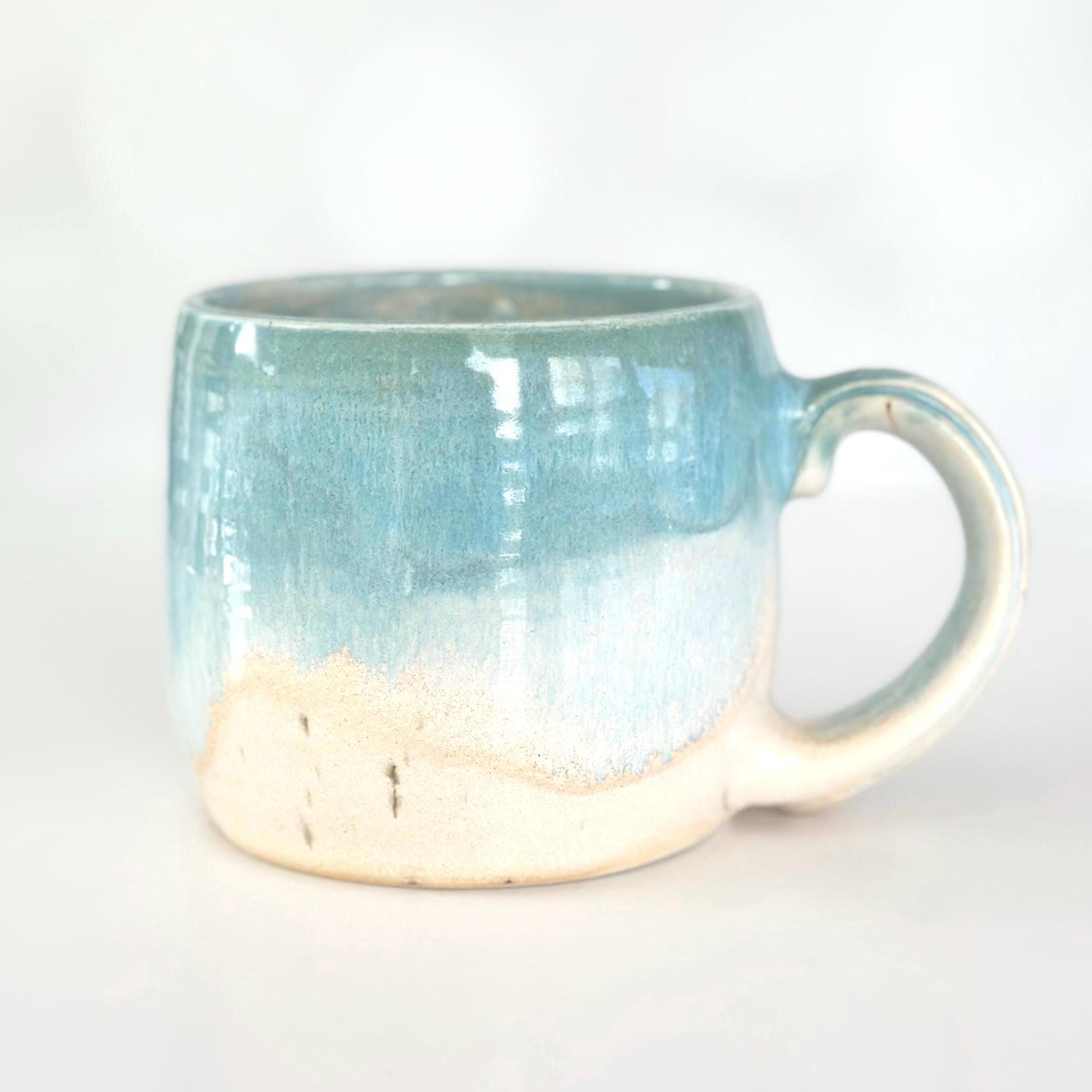 This handmade pottery mug is the perfect coffee lover gift for a coffee bar station or boho kitchen. A unique birthday coffee station gift for tea lovers or anyone who enjoys artisan mugs.