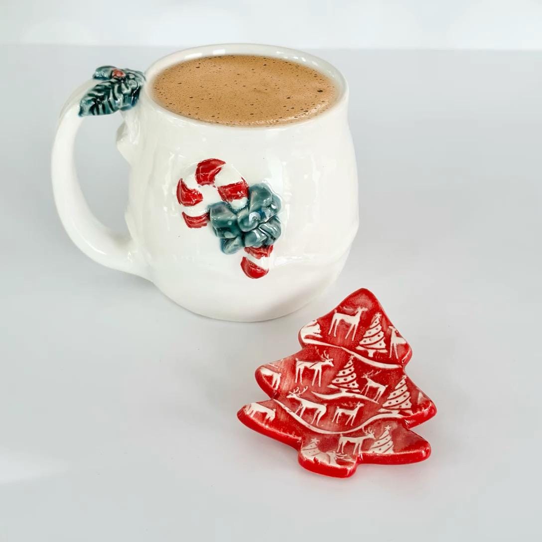 This Christmas tree coffee spoon rest is the perfect Christmas kitchen decor. A festive holiday tree teaspoon rest that makes a great Christmas coffee bar festive home coffee station accessory gift.