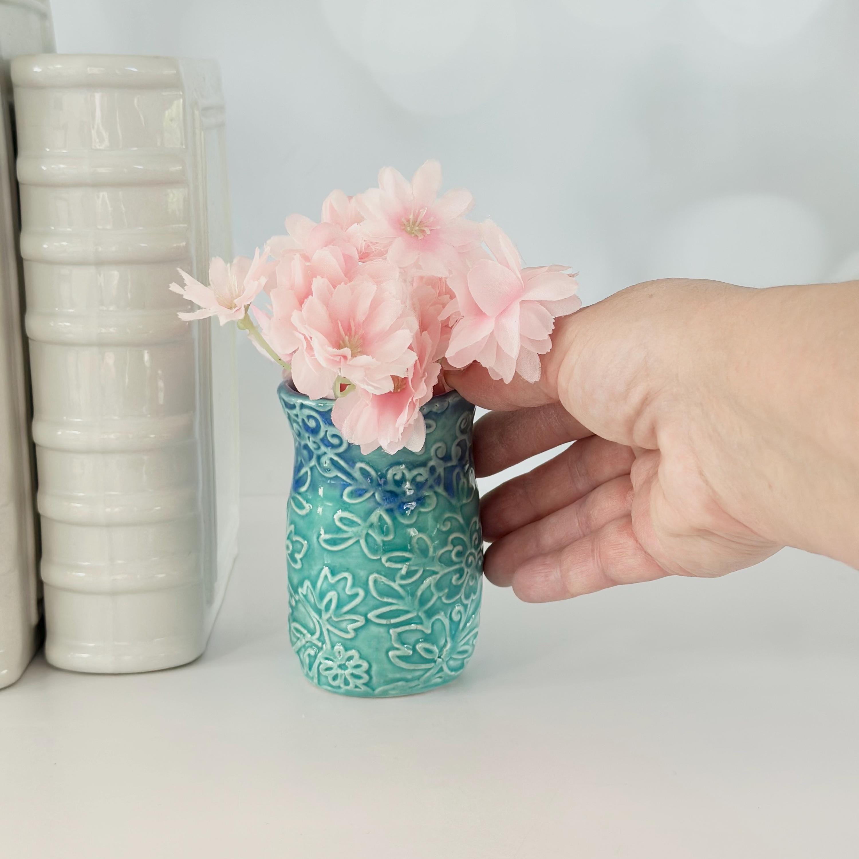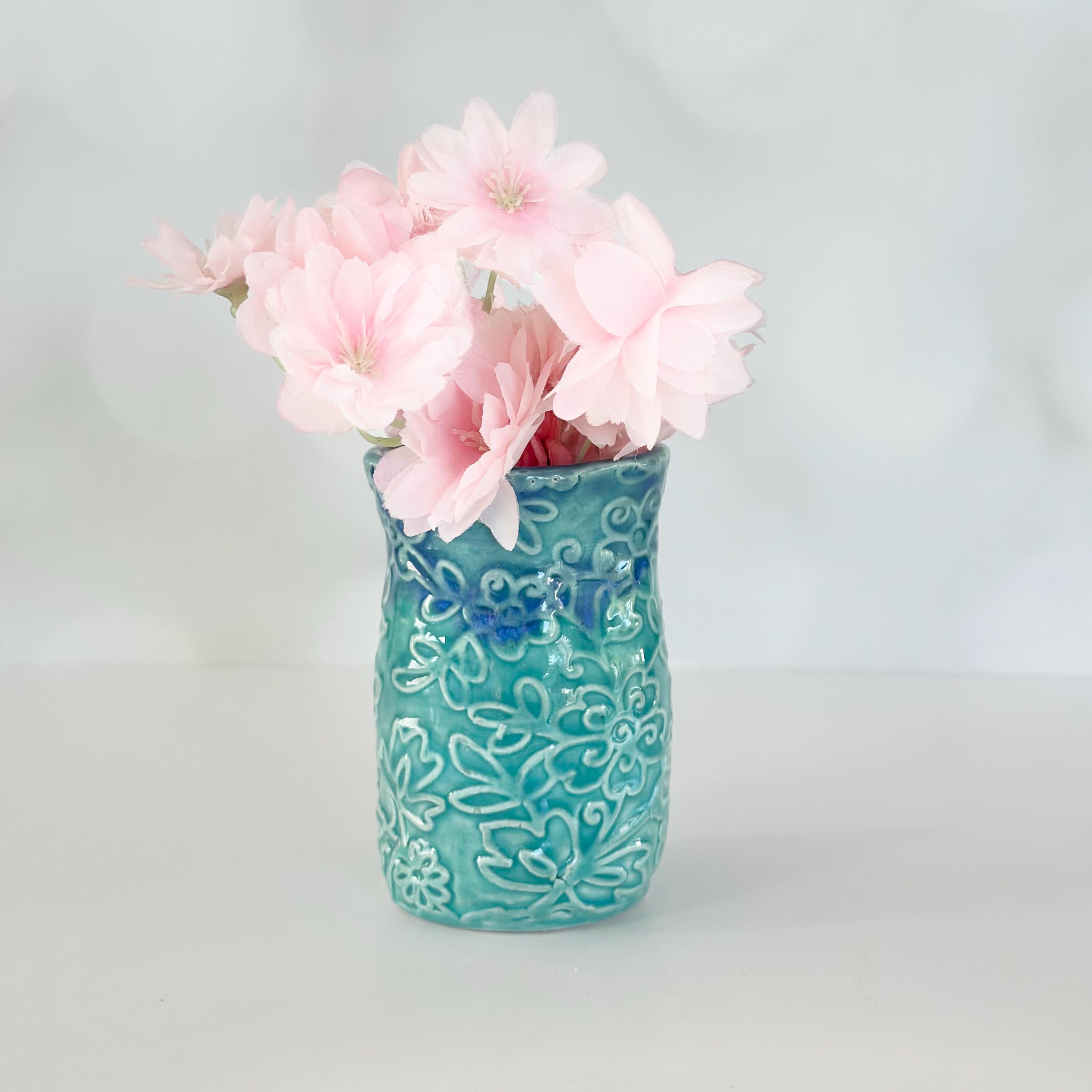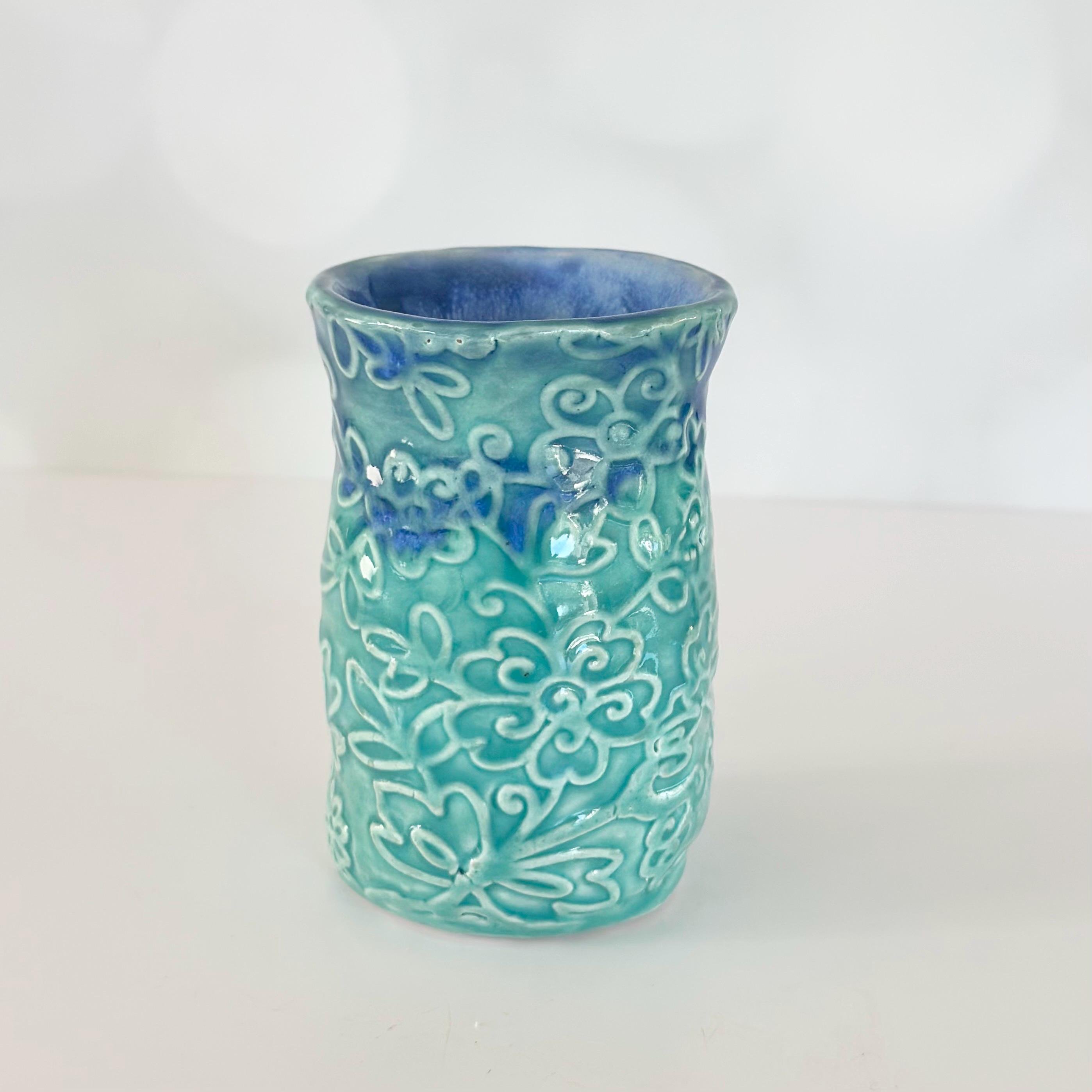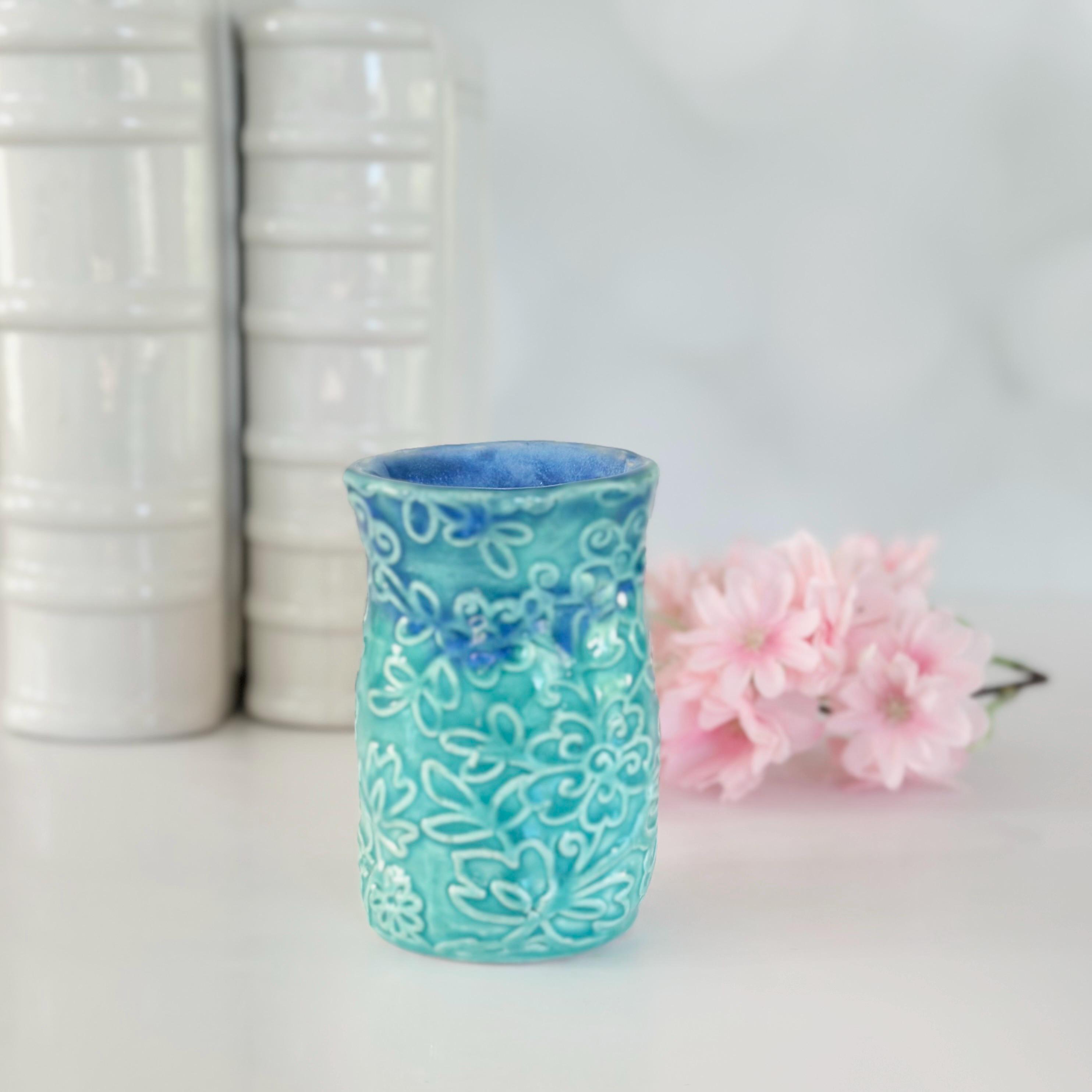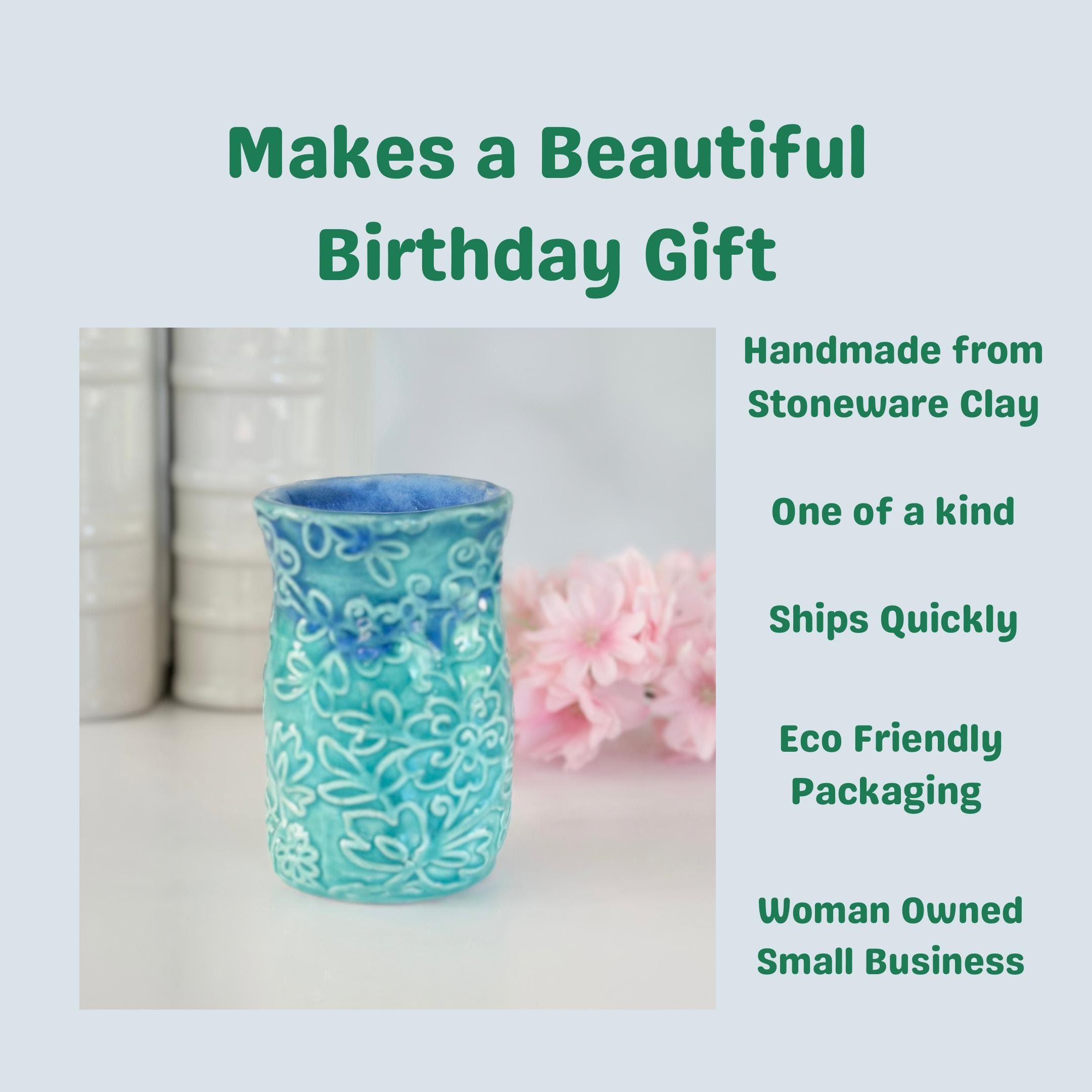 Our pottery is photographed up close to show details. Please double check and carefully read the description for exact measurements. No refunds are given for not reading size information.