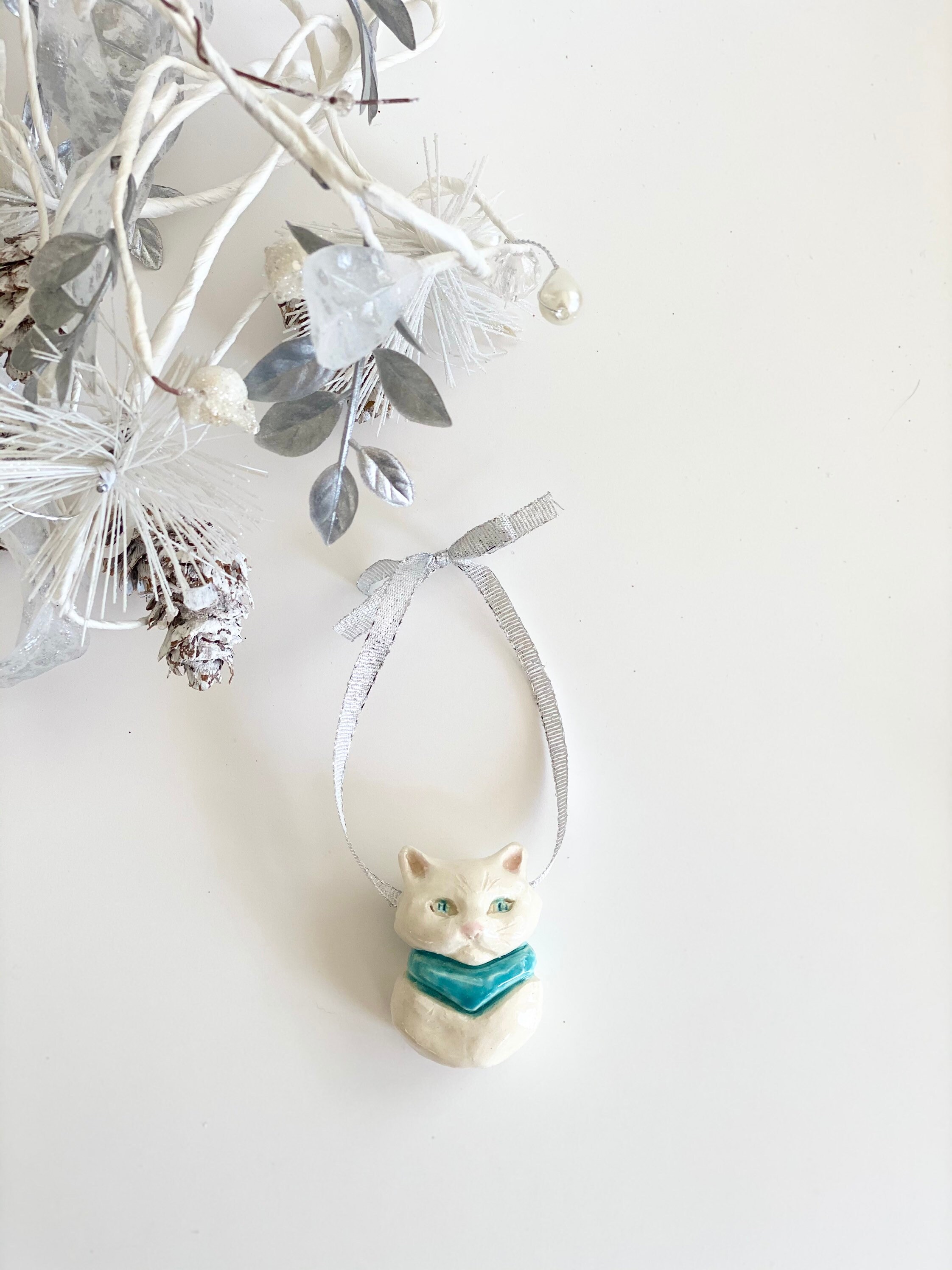Our one of a kind handmade sculpted cat ornament by NYC artist Bebe Booth