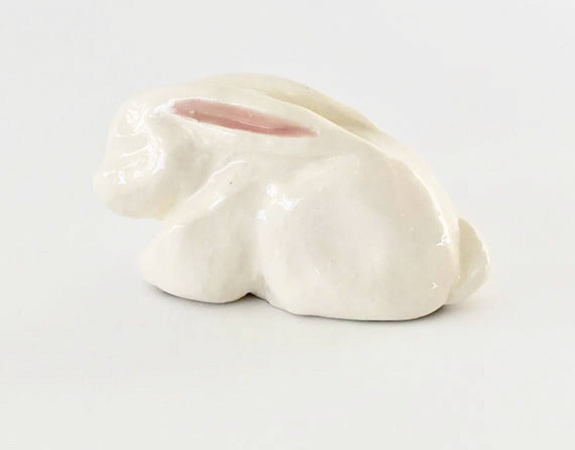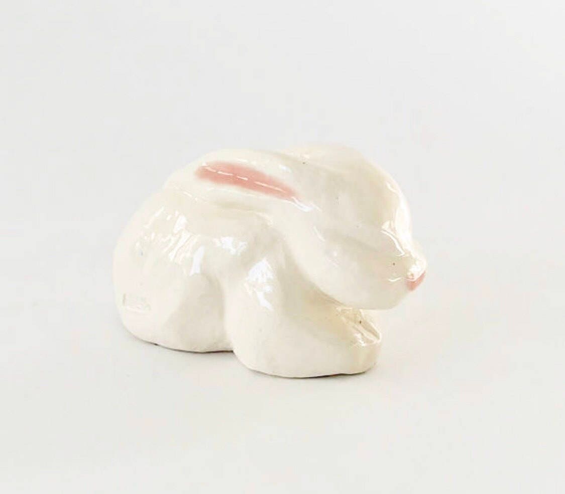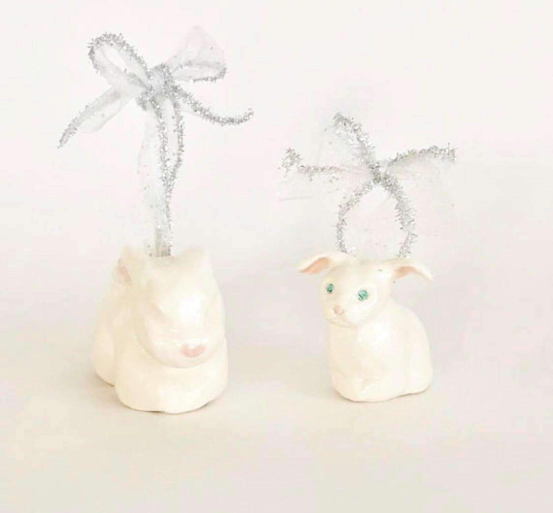 This is a one of a kind handmade sculpted rabbit Christmas ornament by NYC artist Bebe Booth