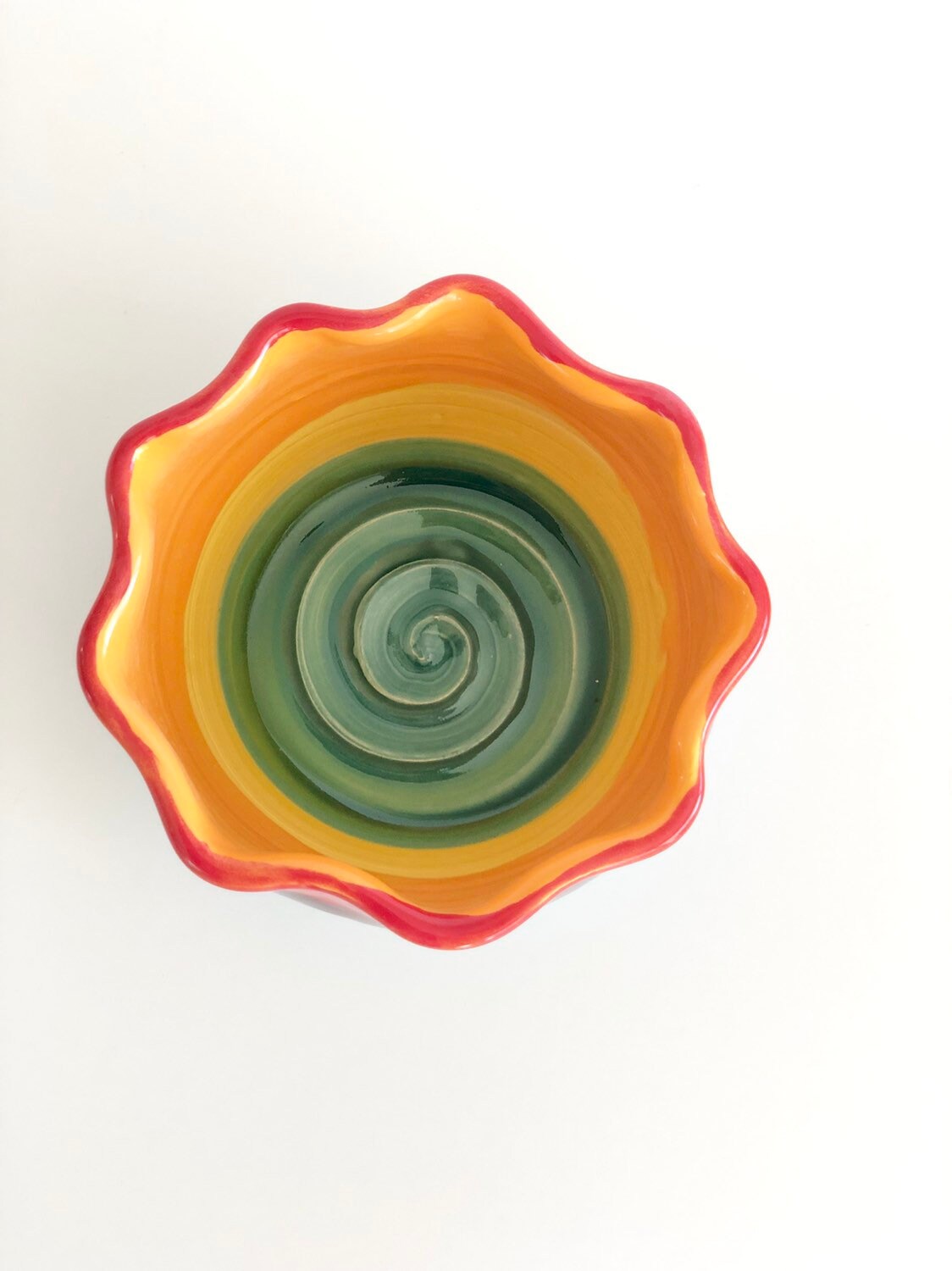 Our pottery is photographed up close to show details. Please double check and carefully read the description for exact measurements. No refunds are given for not reading size information.