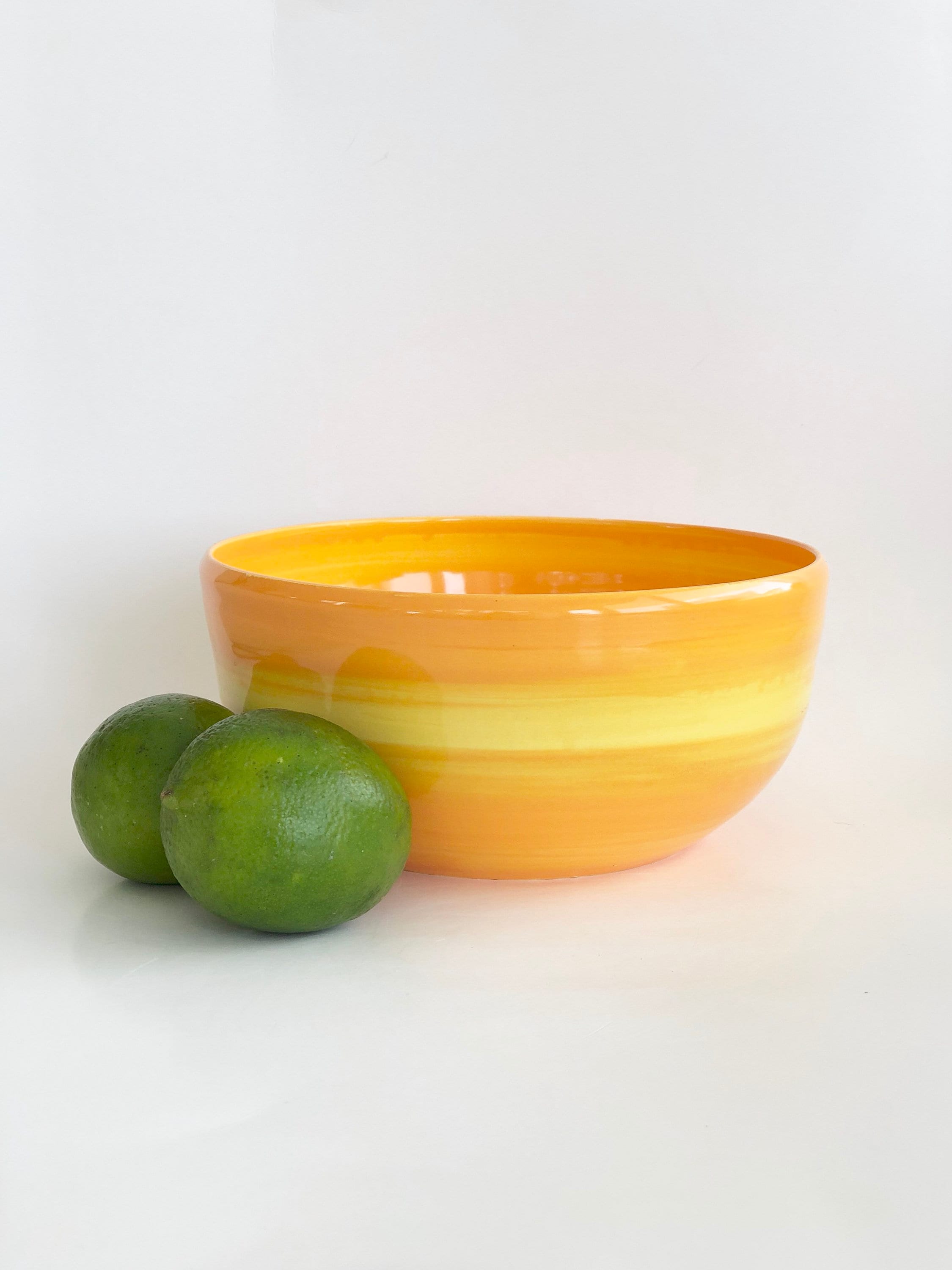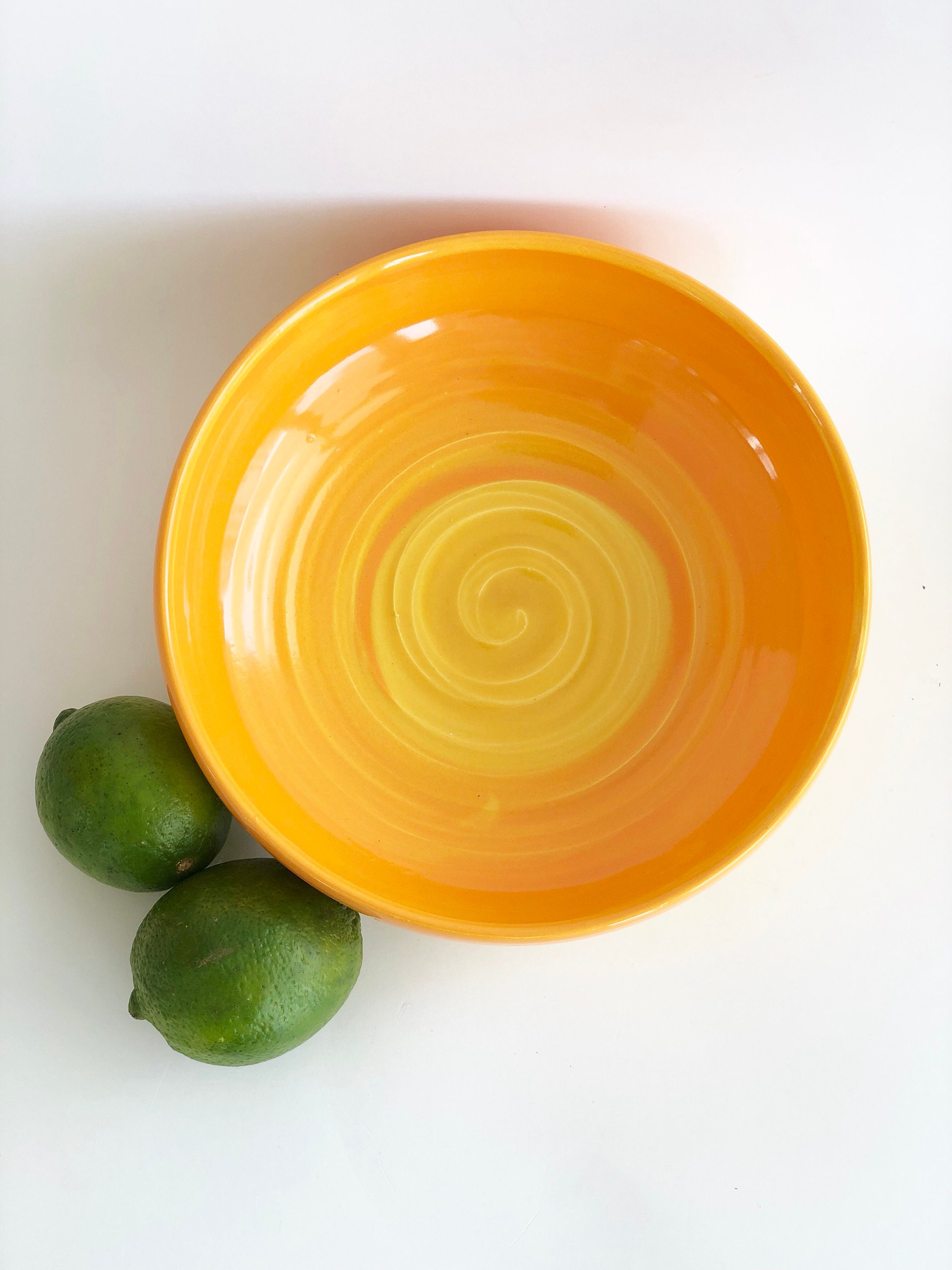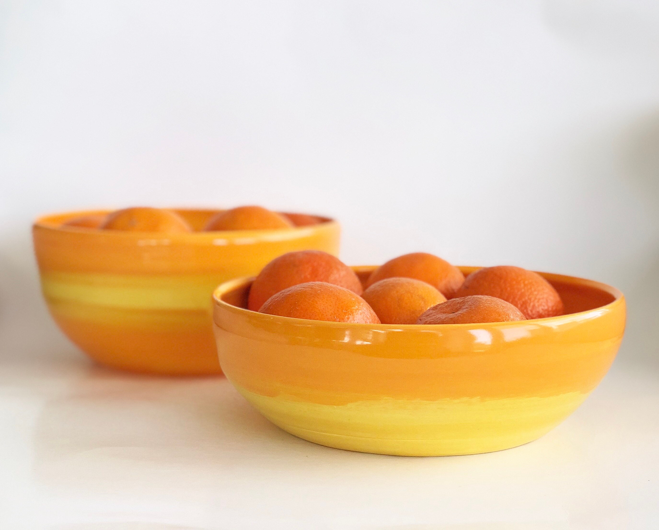 A perfect way to serve food and will look beautiful when used alone or when paired with other orange/yellow or green/blue bowls in our shop found here: