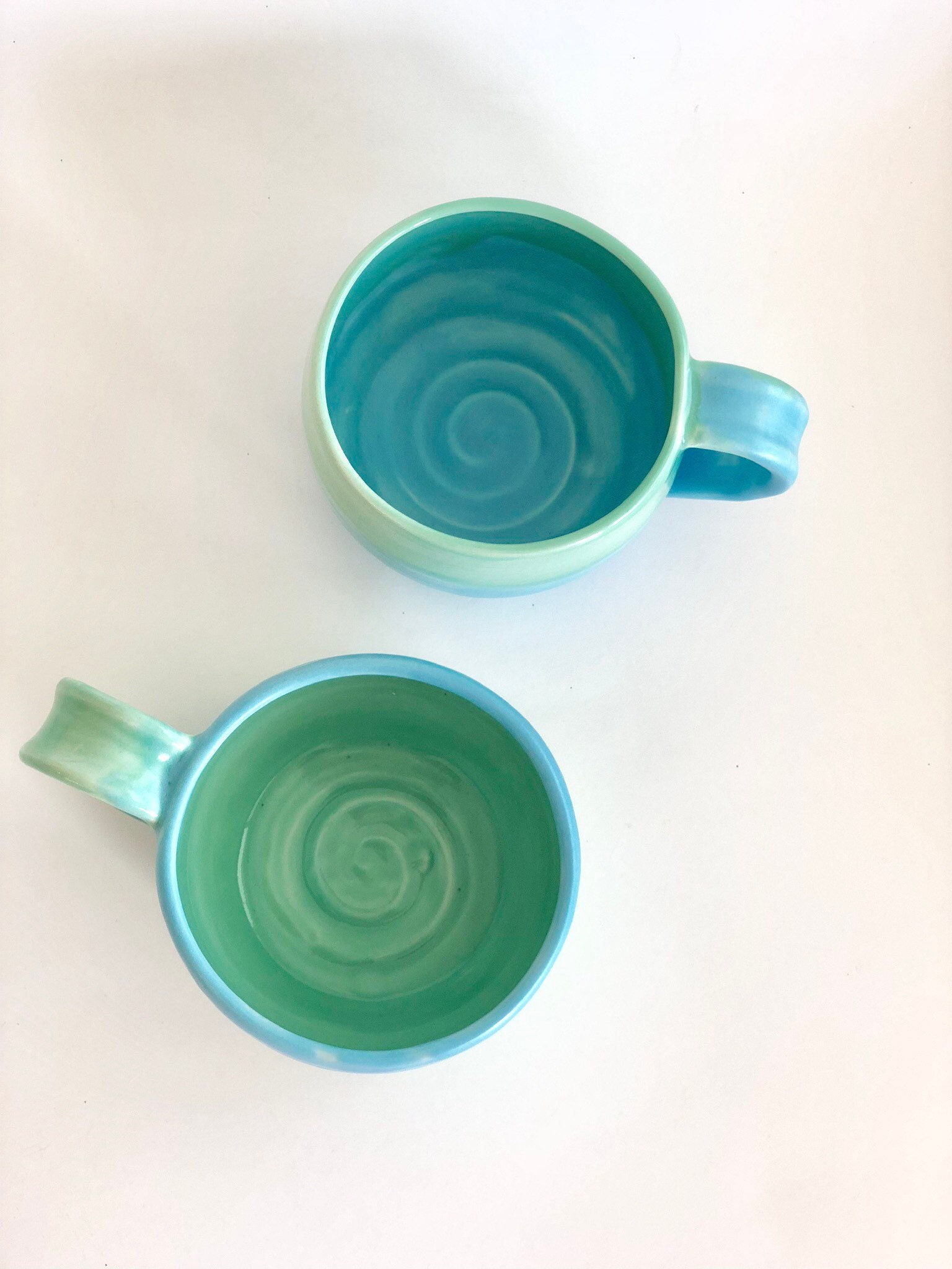 These are individual handmade pieces of art and the mug you see in the photo will be the exact mug you receive.
