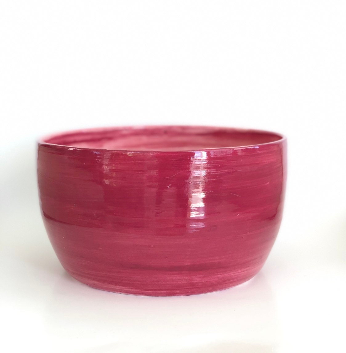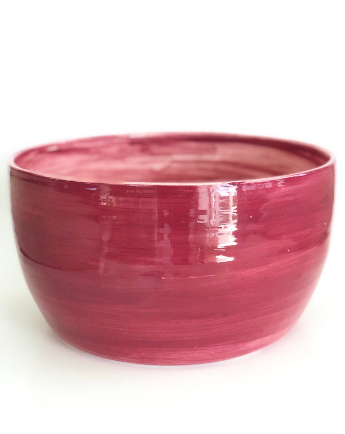 Handmade wheel thrown pot in a deep rose/raspberry.