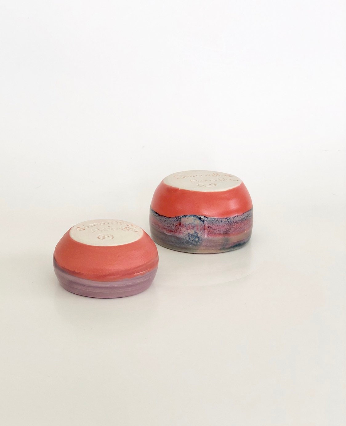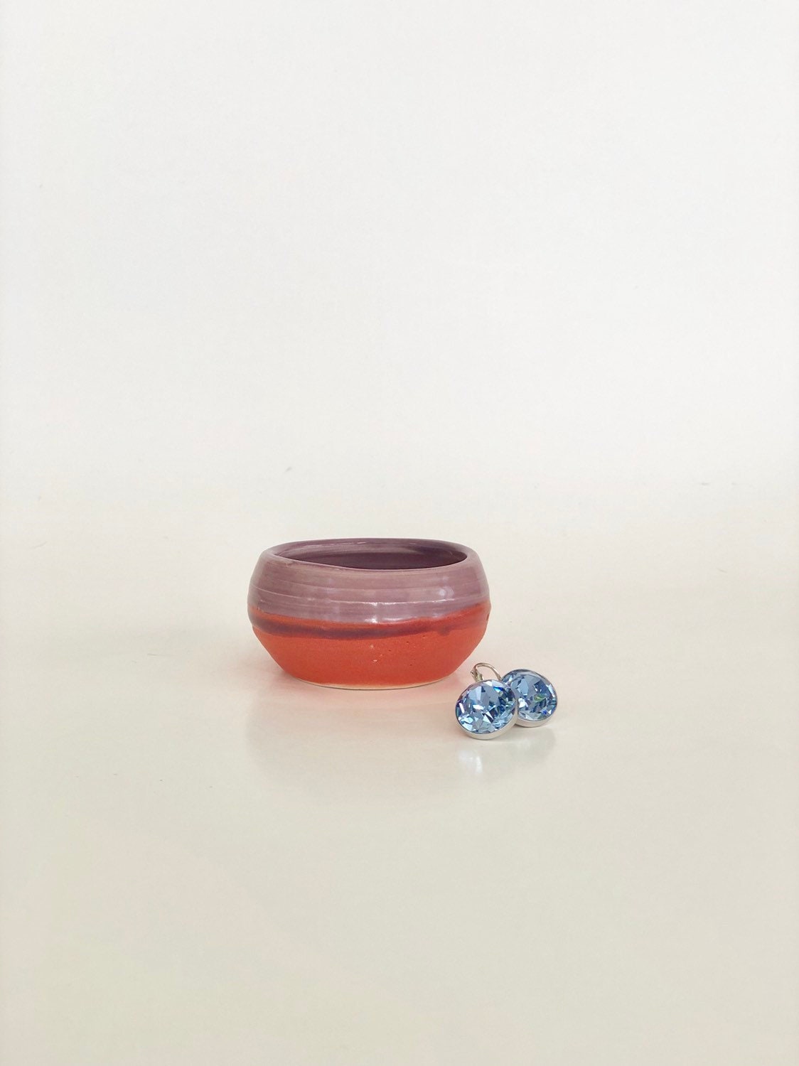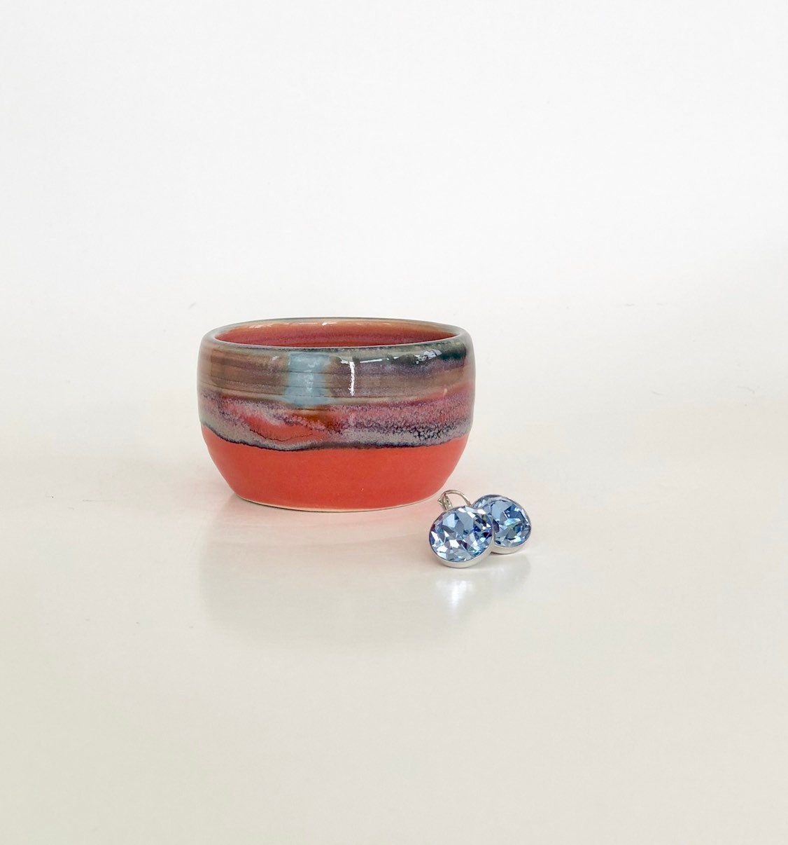 Mini trinket pot perfect size for holding something small such as rings by the kitchen sink, or for salt/pepper on the table.