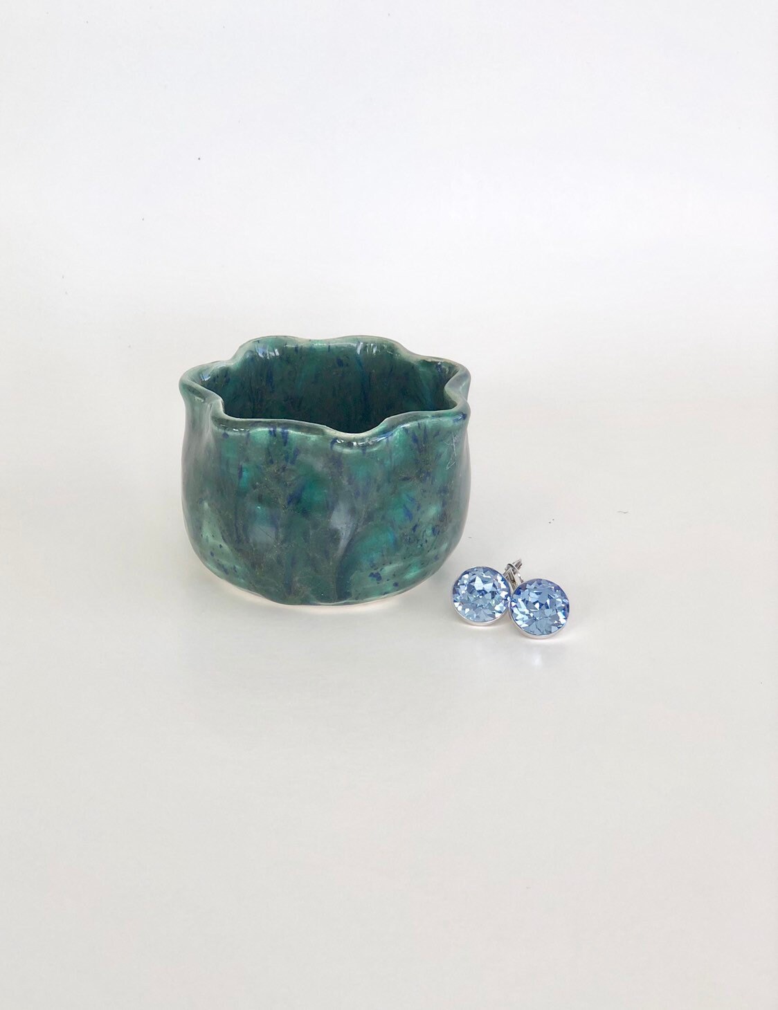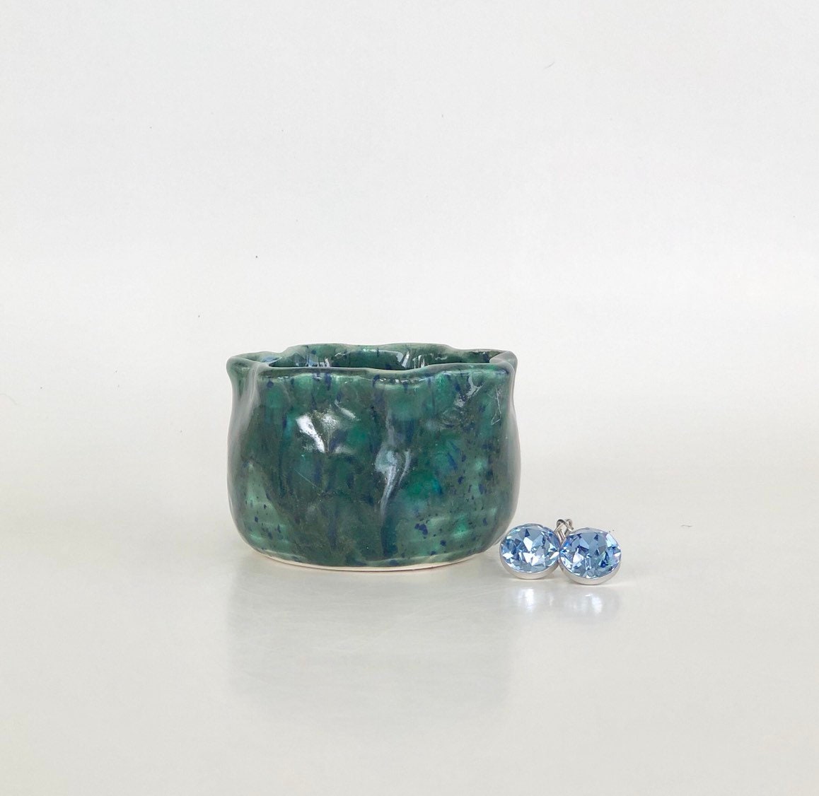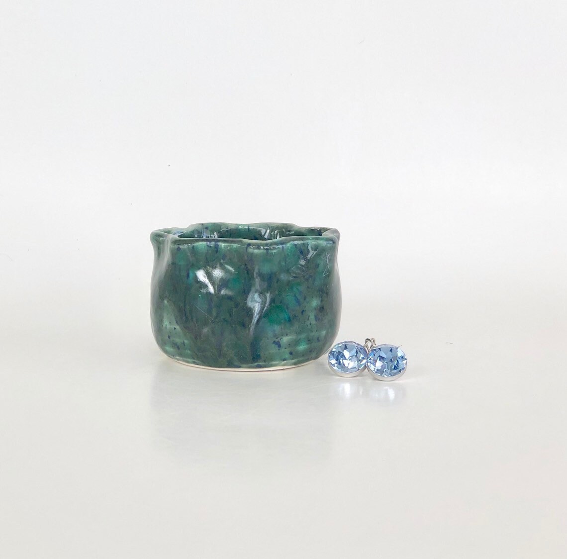 Small trinket pot perfect size for holding rings by the kitchen sink.