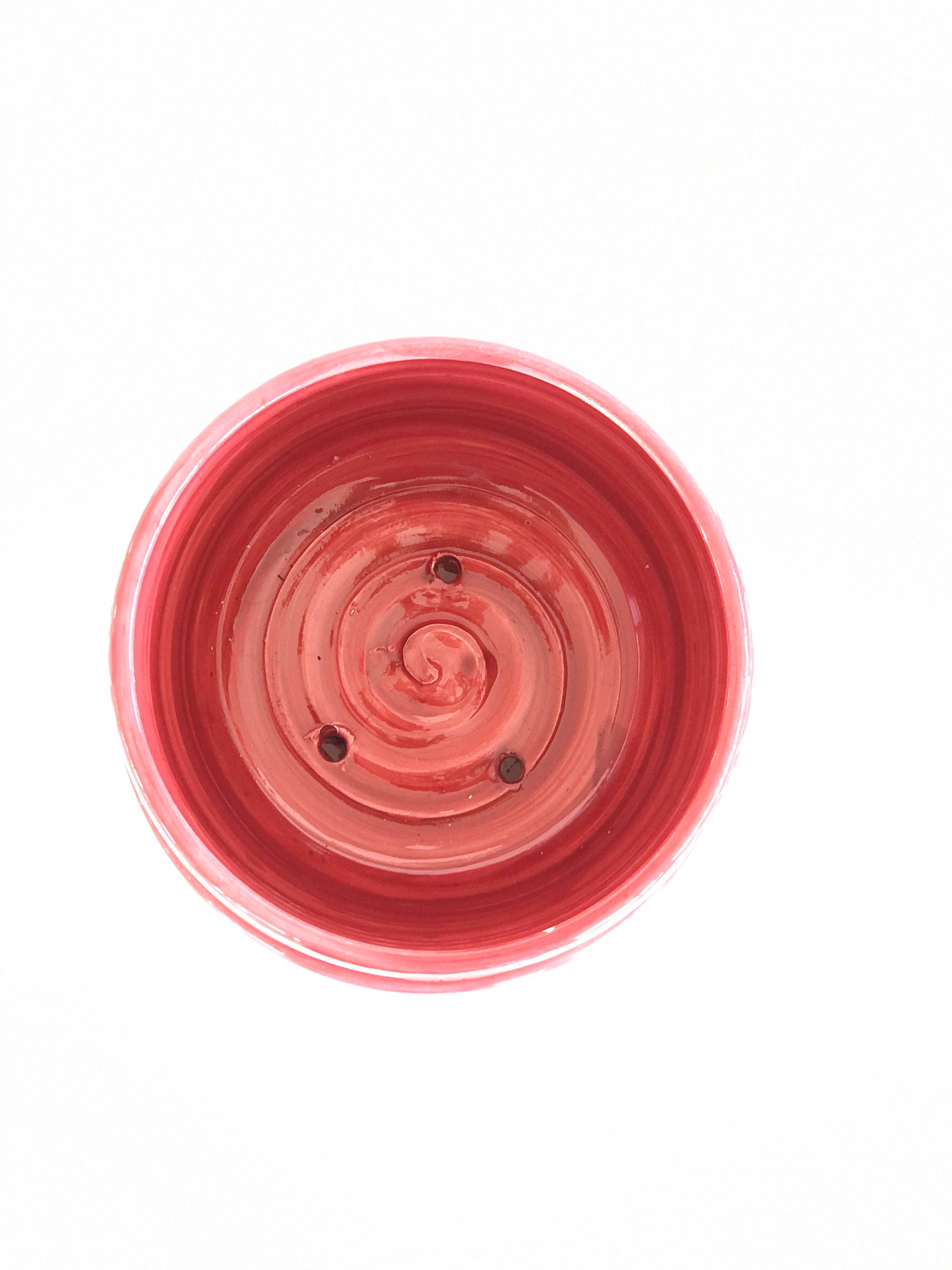 Our handmade wheel thrown pot in a deep rose/raspberry.