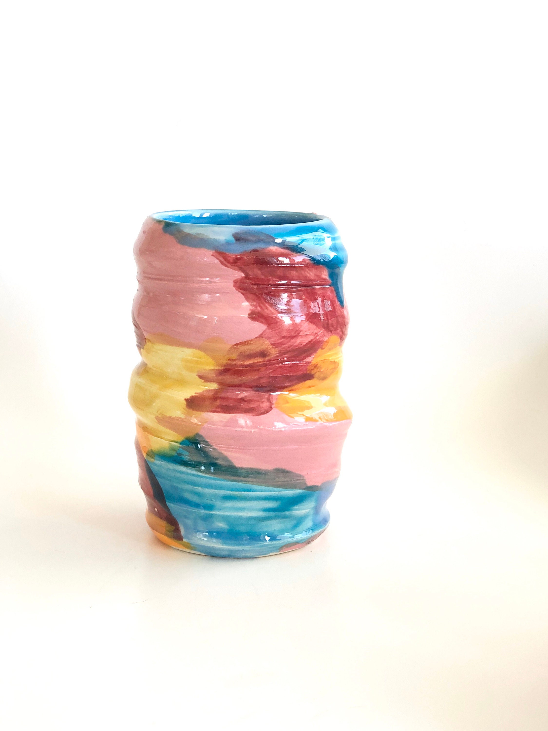 A modern abstract flower vase. Hand glazed and one of a kind.